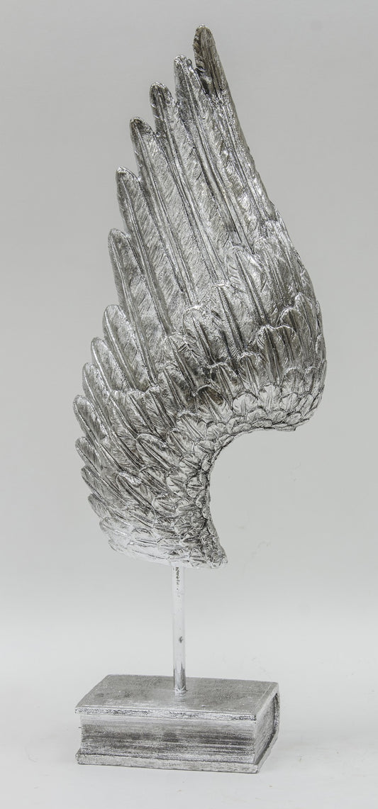 Aripă decorativă mare pe carte argintie