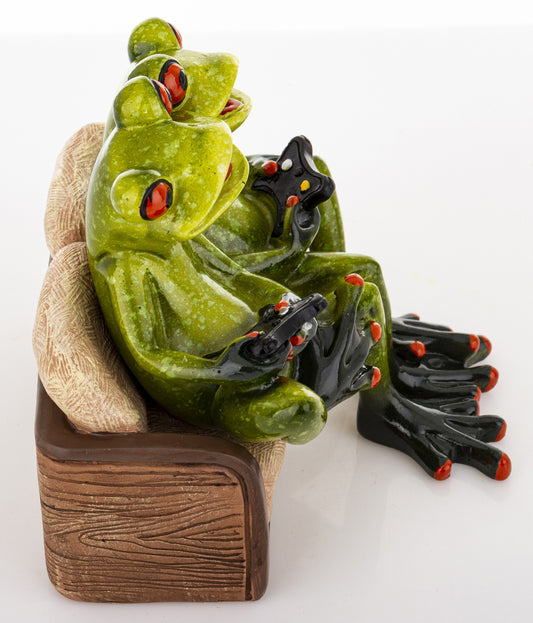 Figurină broaște jucându-se pe consolă 12x12x11,5 cm