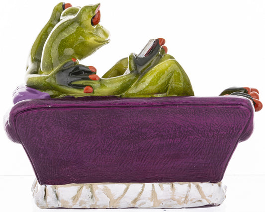 Figurină broaște citind pe canapea