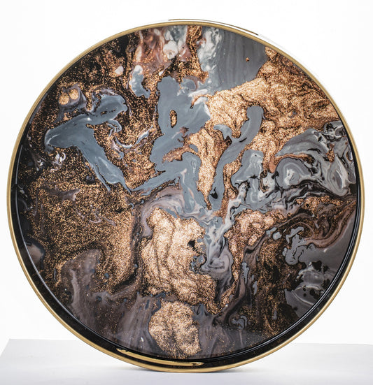Farfurie sticlă cafenie DIA 33 cm – decor rafinat