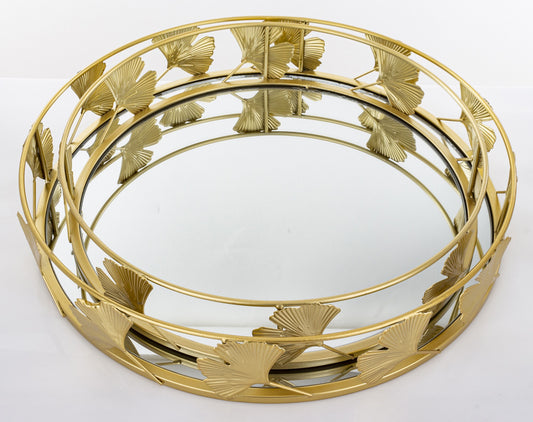 Tavă aurie ginko oglindă mică 34x24x7 cm – decor elegant