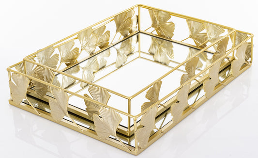 Tavă aurie ginko oglindă mare 38x28x7 cm – decor sofisticat