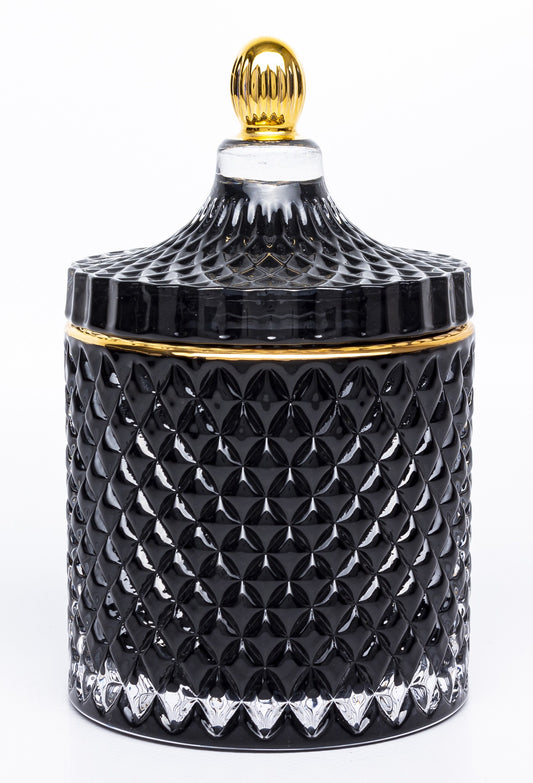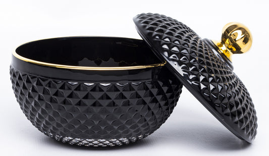 Bombonieră sticlă neagră auriu