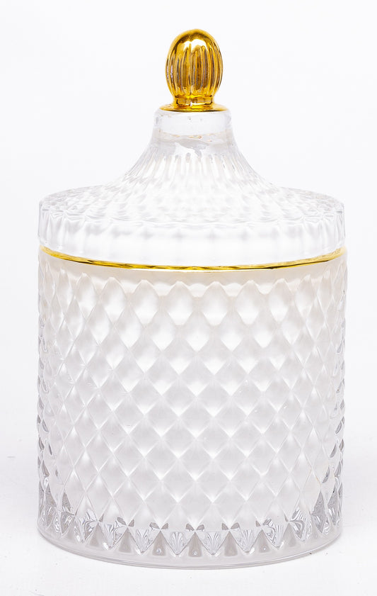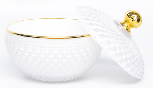 Bombonieră sticlă alb auriu