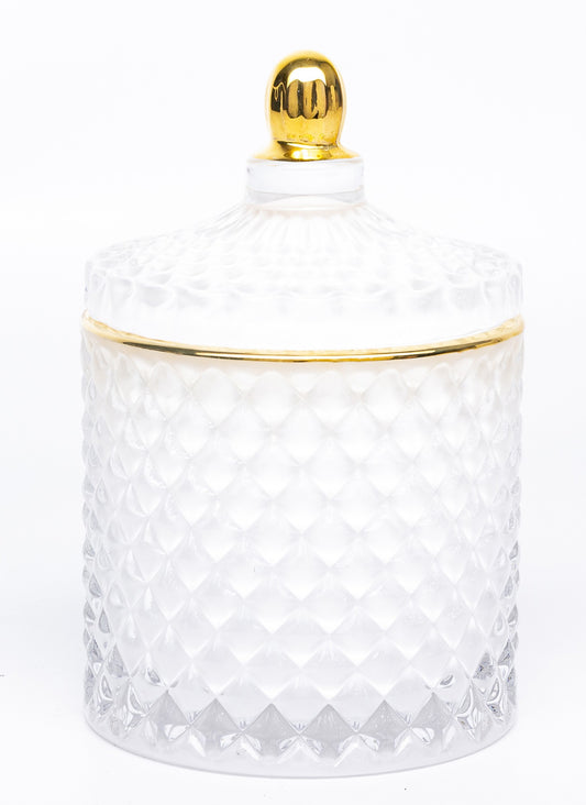 Bombonieră de sticlă alb auriu 14,5x8,5x8,5 cm