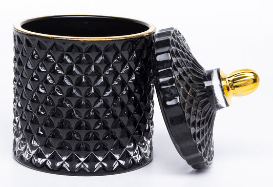 Bombonieră sticlă neagră cu auriu 17,5x10,5x10,5 cm