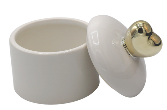Bombonieră ceramică albă cu inimă 8,2x8,2x9,8cm