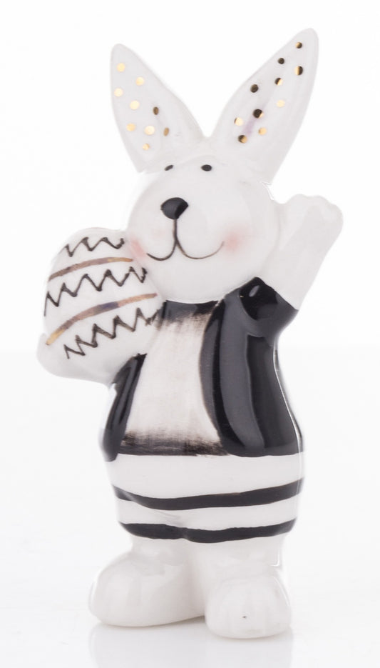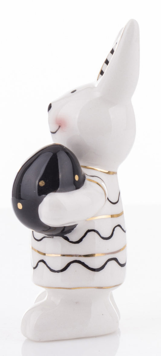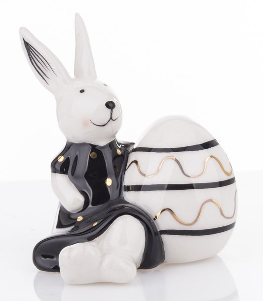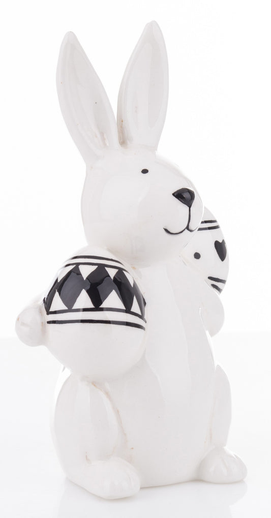Figurină iepure cu ou alb negru 8,5x7,5x7 cm