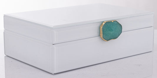 Cutie bijuterii sticlă albă cu piatră turcoaz mare 8x24,5x17 cm