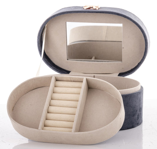 Cutie bijuterii gri petrol catifea cu fundă 8x17,5x12 cm