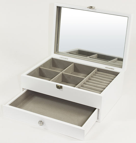 Descoperă colecția noastră de cutii pentru bijuterii, disponibile în diverse materiale premium, precum piele, lemn, sticlă, catifea, metal și cristal. Fiecare cutie este concepută pentru a păstra bijuteriile tale într-un mod elegant și organizat, adăugând un accent de rafinament și stil în orice cameră. Indiferent de preferințele tale, vei găsi o cutie care să se potrivească perfect gusturilor tale și să protejeze cu grijă bijuteriile cele mai dragi. Comandă acum și beneficiază de livrare gratuită în România pentru comenzile de peste 350 lei!