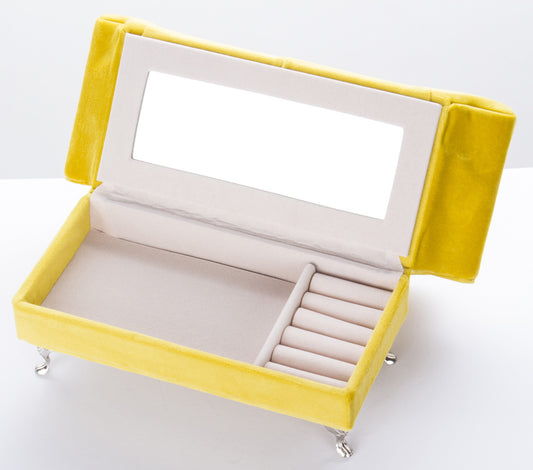Cutie de bijuterii catifea galbenă