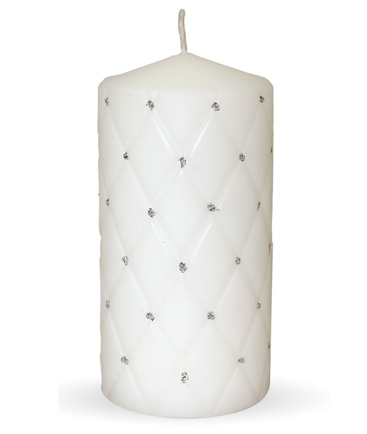Lumânare alb perlat cu pietre 17,5x7x7 cm