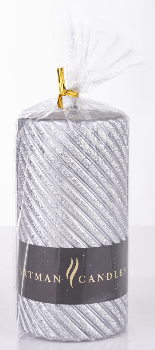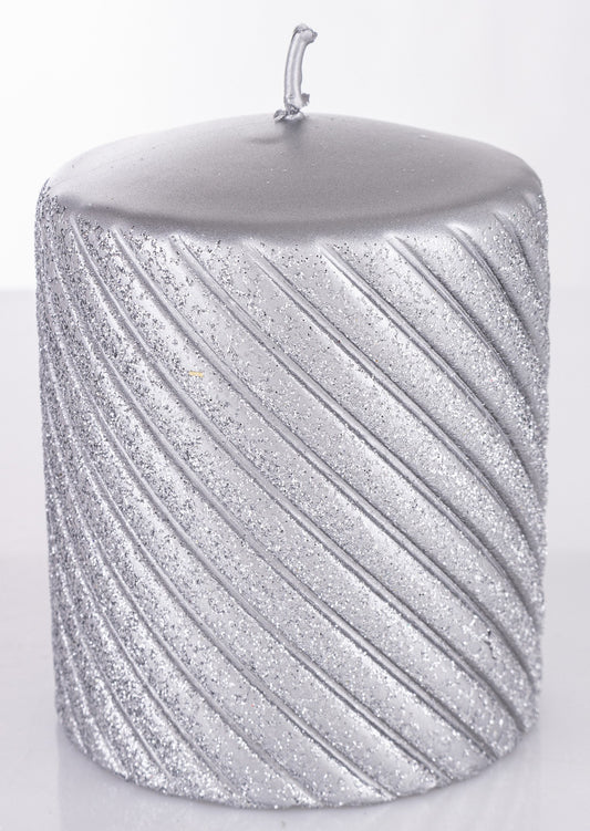 Lumânare argintie cu sclipici
