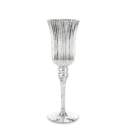 Sfeșnic cupă sticlă argintiu mic