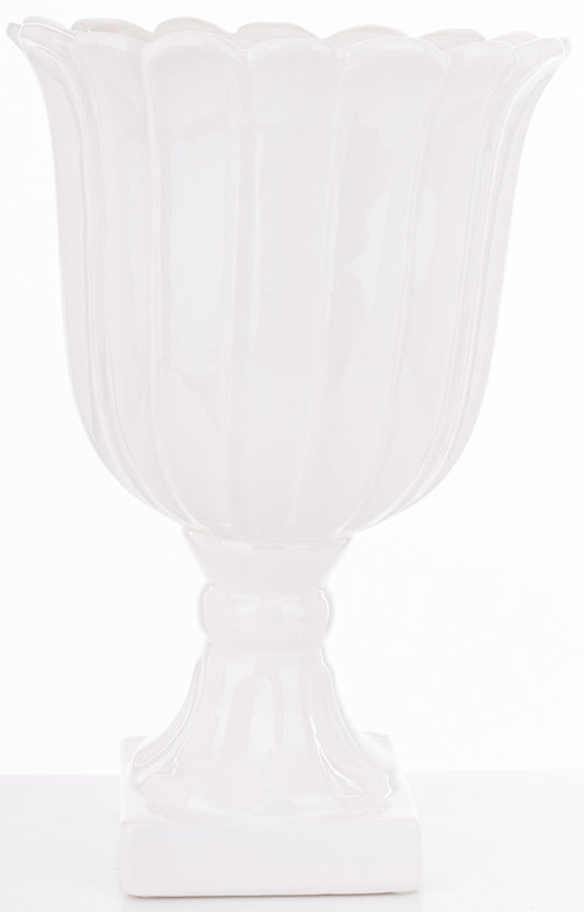 Vază albă din ceramică cu picior mare 40x27x27 cm