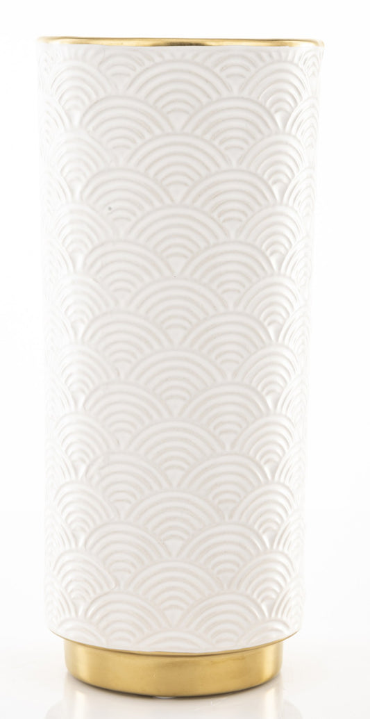 Vază ceramică masivă alb aurie 26x16x27,5 cm
