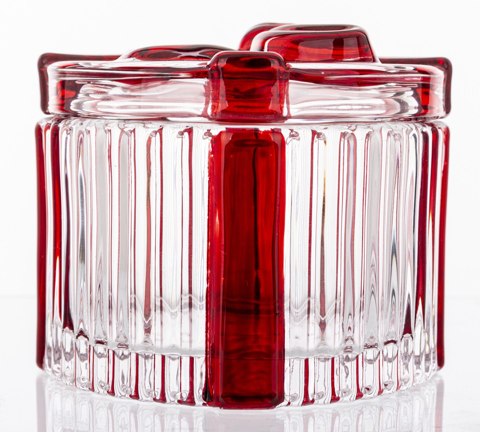 Bomboniera de Crăciun din sticlă, 6x8x8 cm, este perfectă pentru a oferi cadouri elegante sau a decora masa festivă.