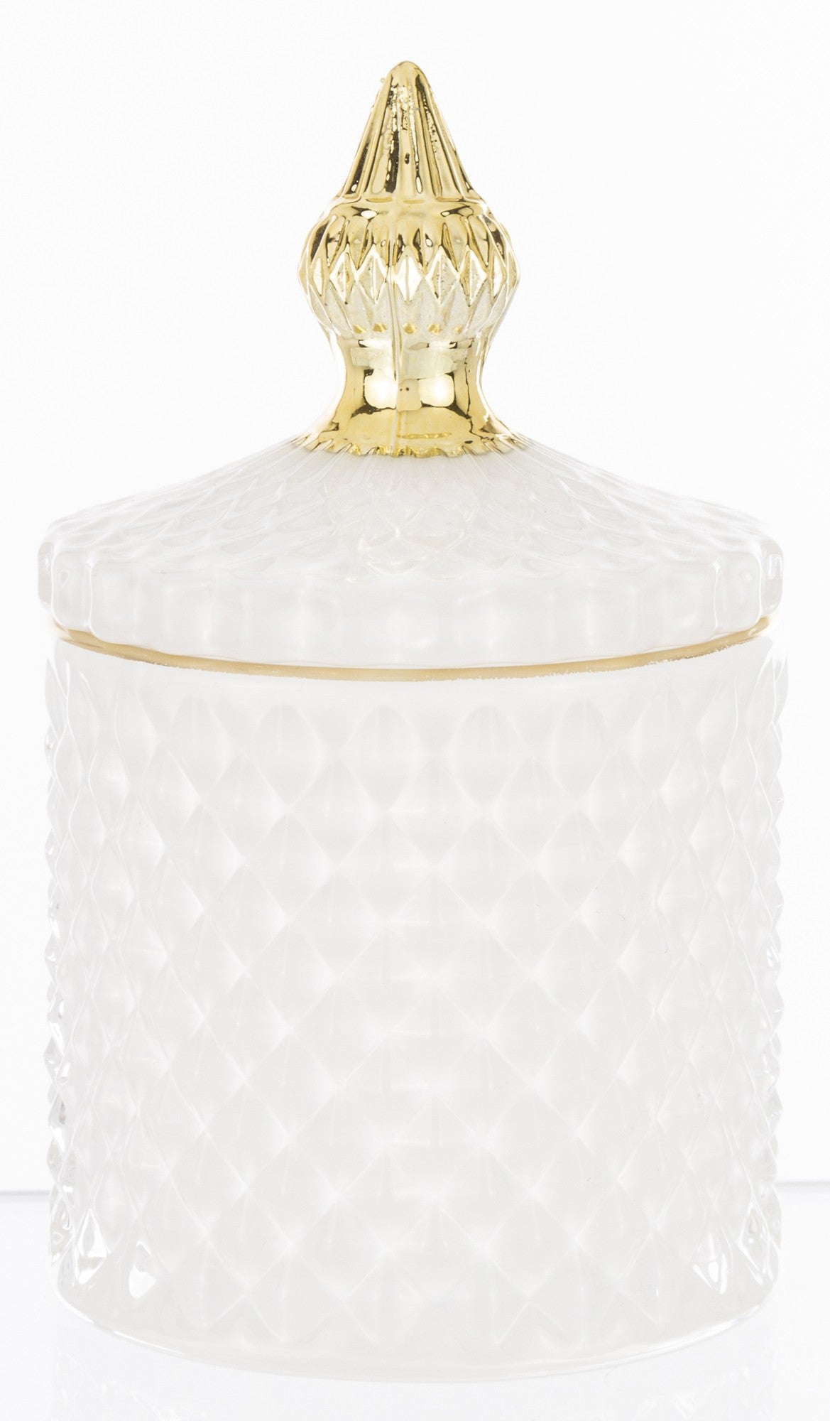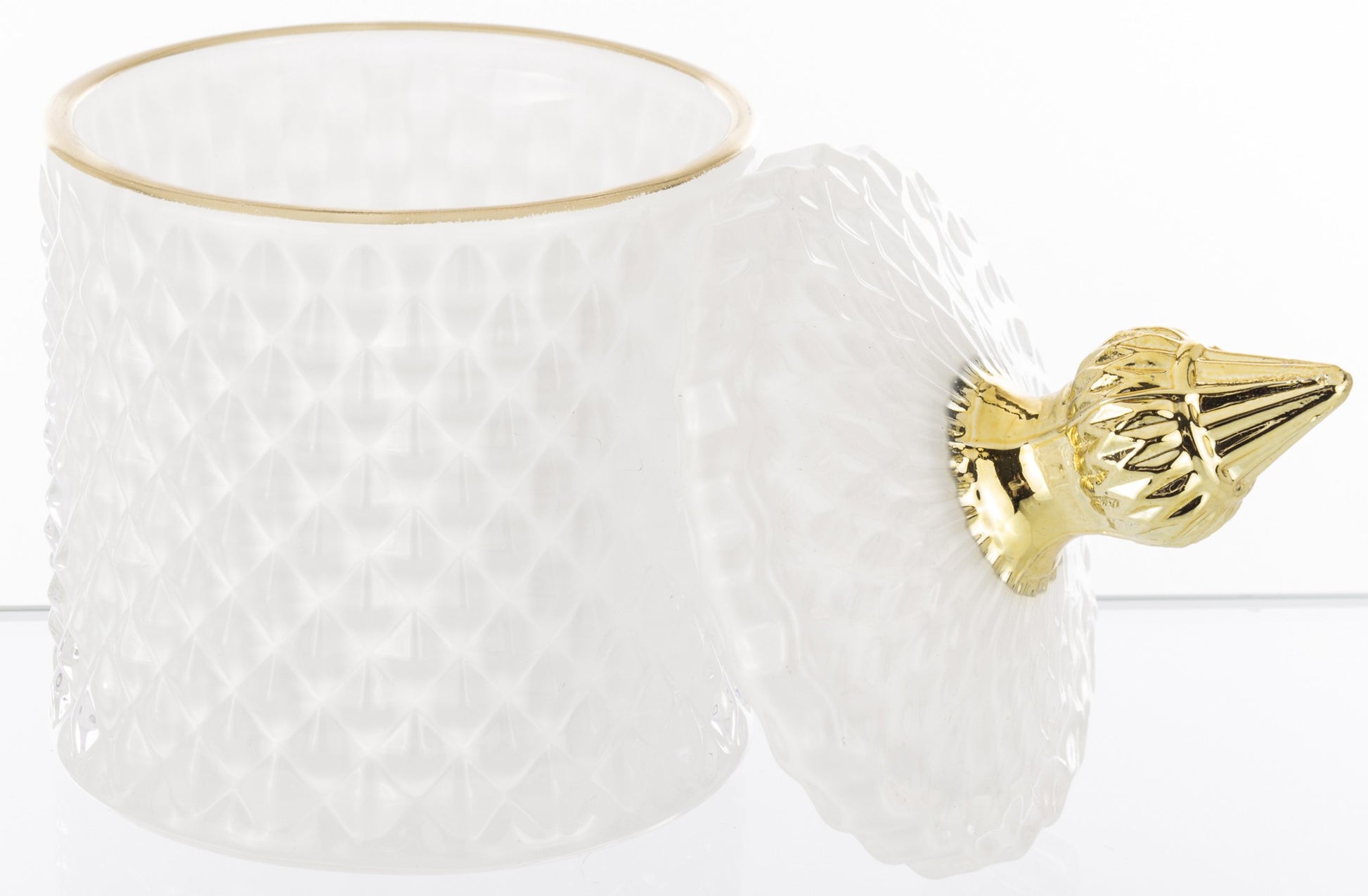 Bombonieră de sticlă alb auriu 14,5x8,5x8,5 cm