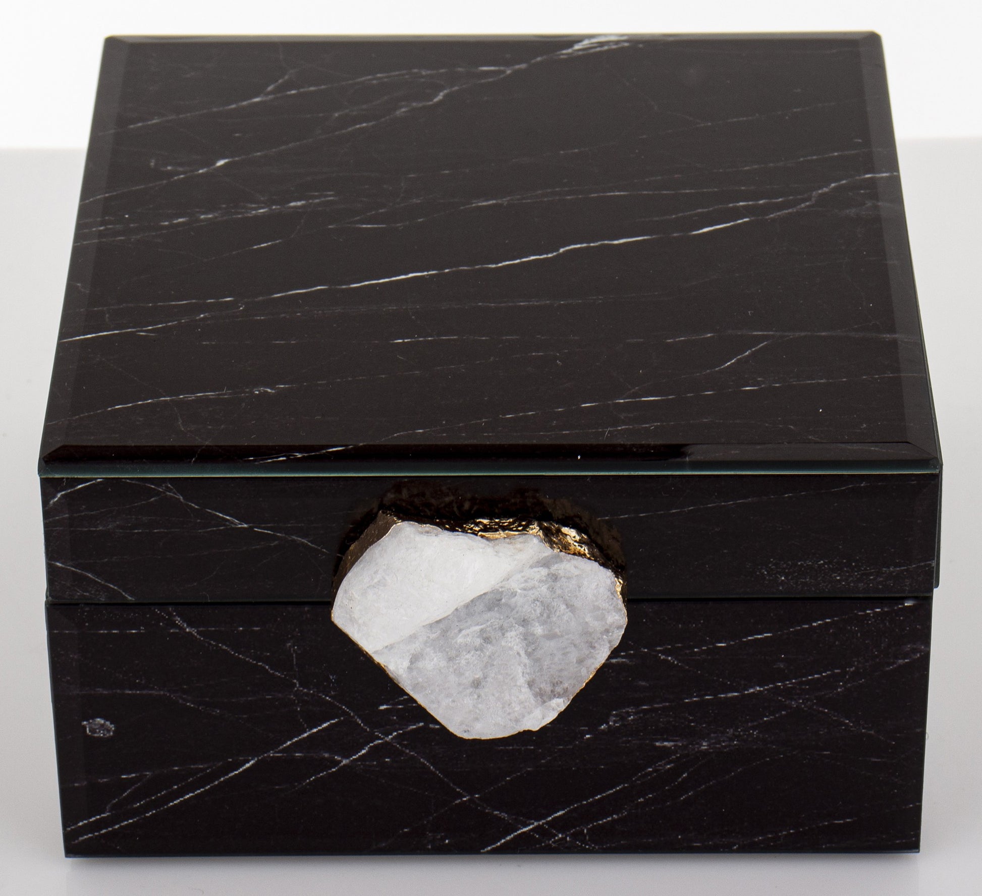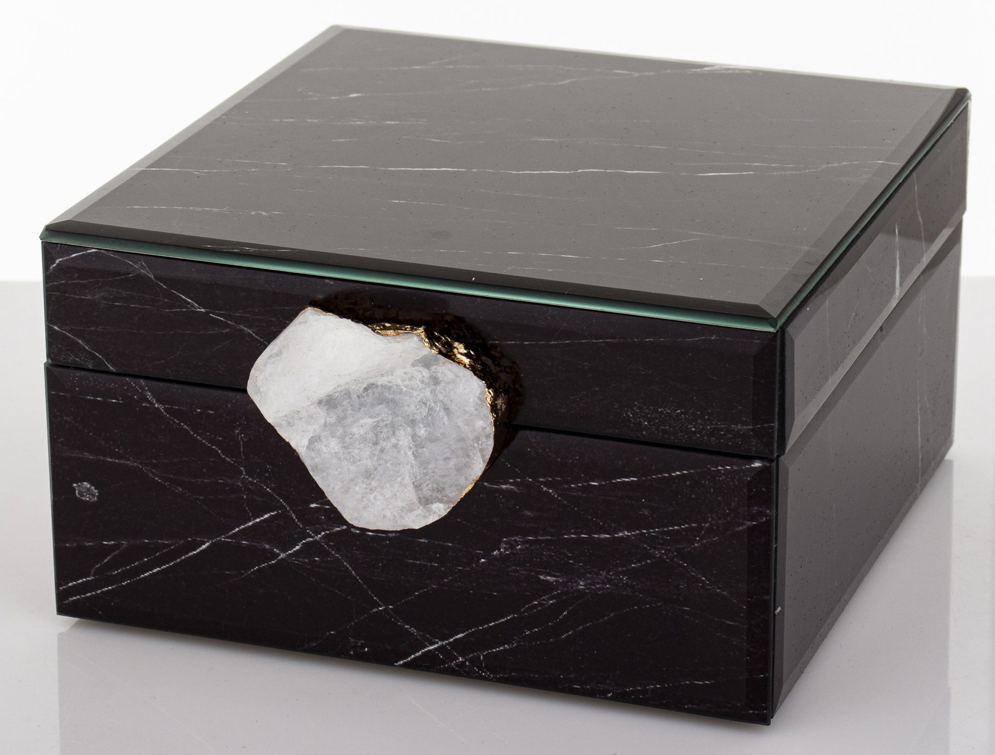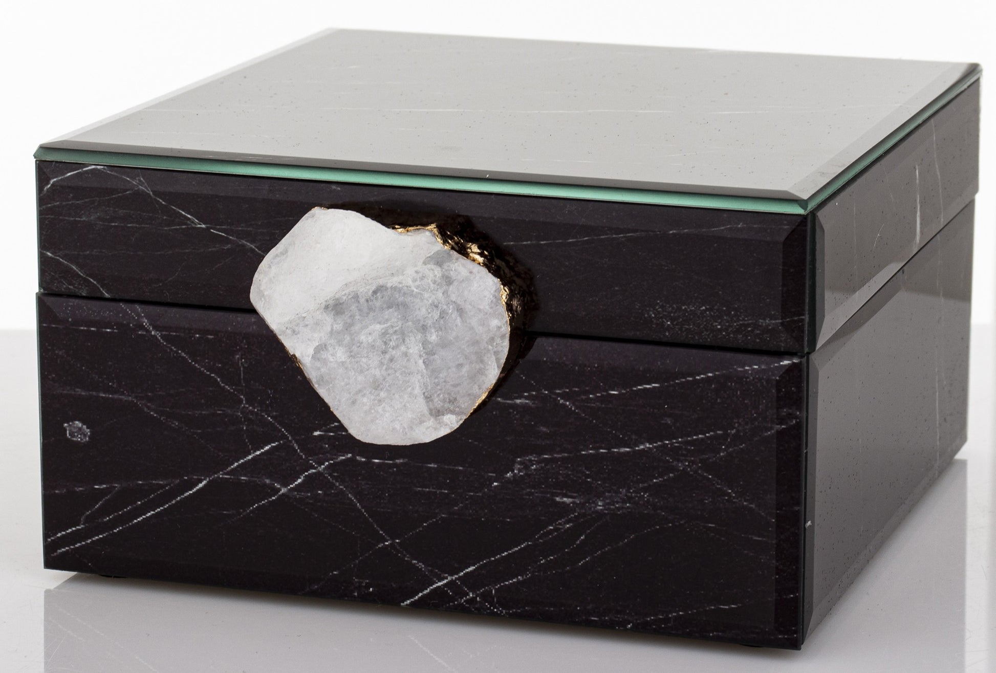 Cutie de bijuterii din sticlă neagră cu piatră 8,5x17x15,5 cm, luxoasă și rafinată. Ideală pentru cadouri și decor elegant.