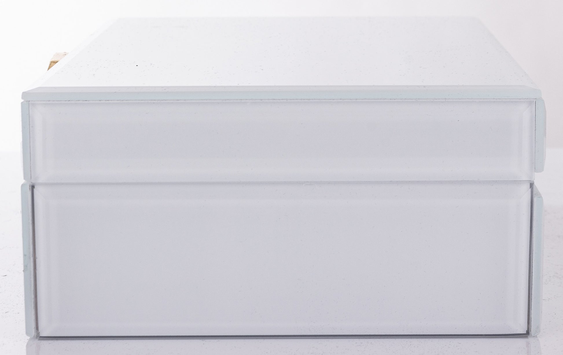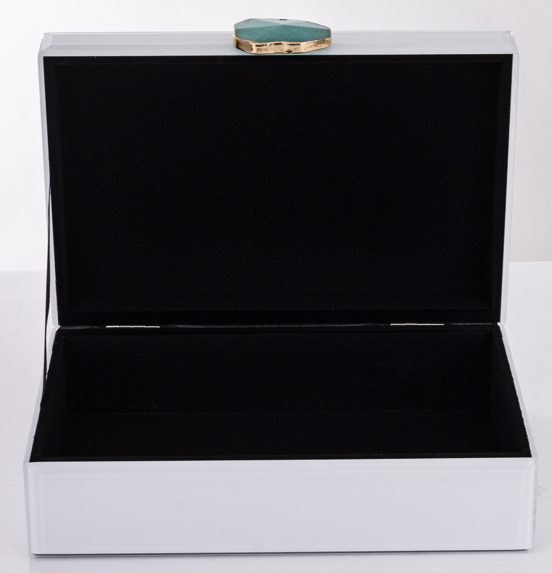Cutie bijuterii sticlă albă cu piatră turcoaz mare 8x24,5x17 cm