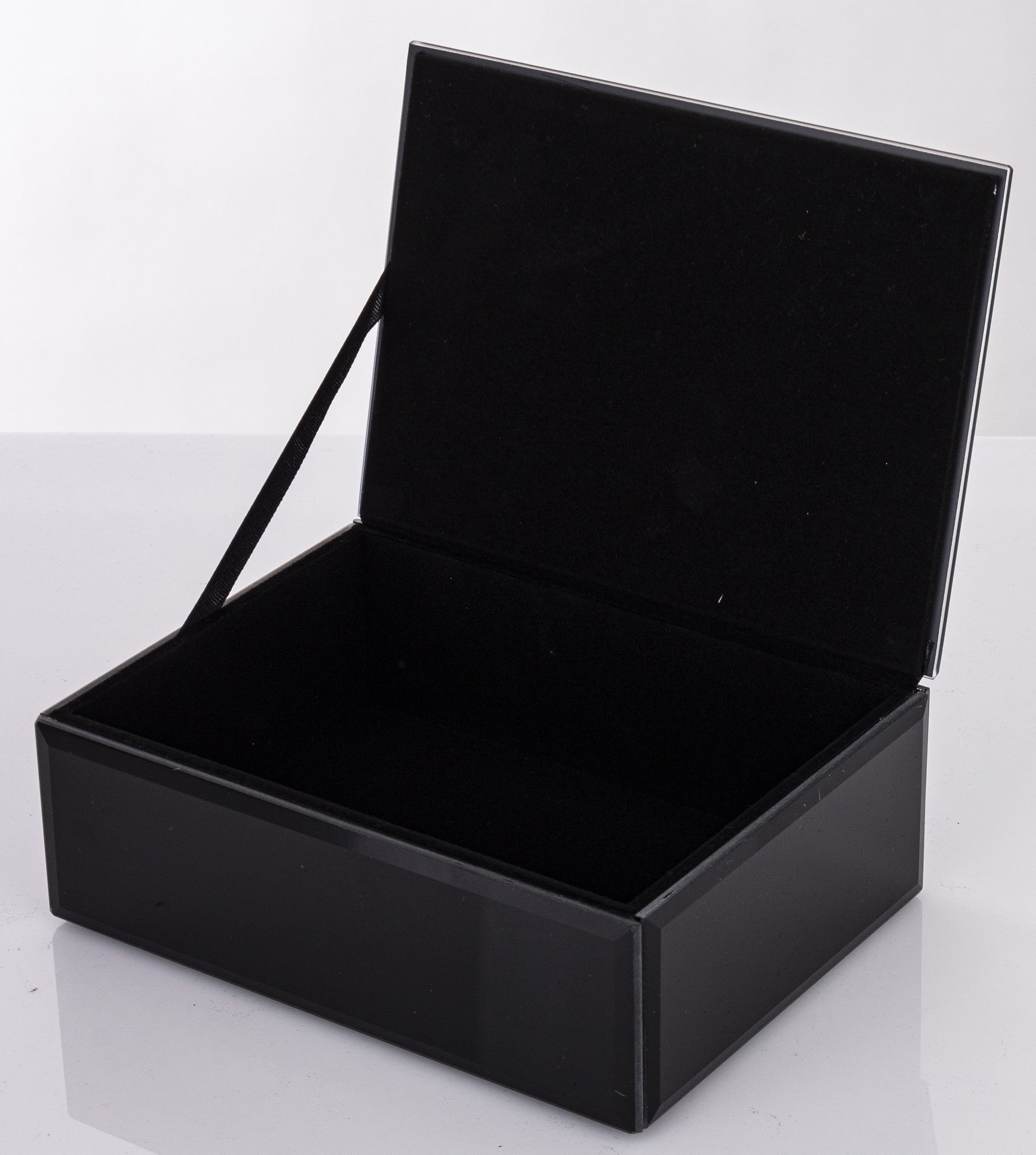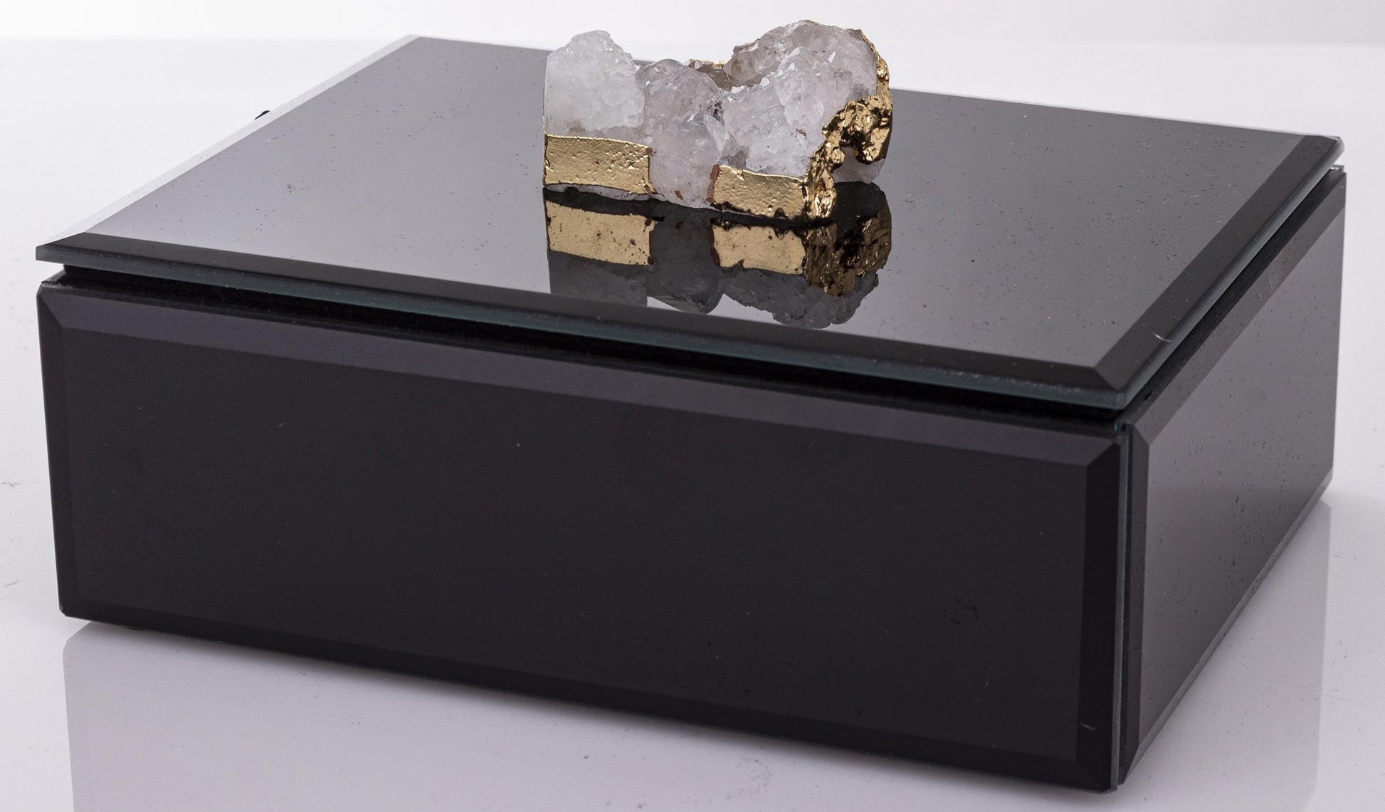 Cutie bijuterii sticlă neagră cu piatră 8x16x12 cm