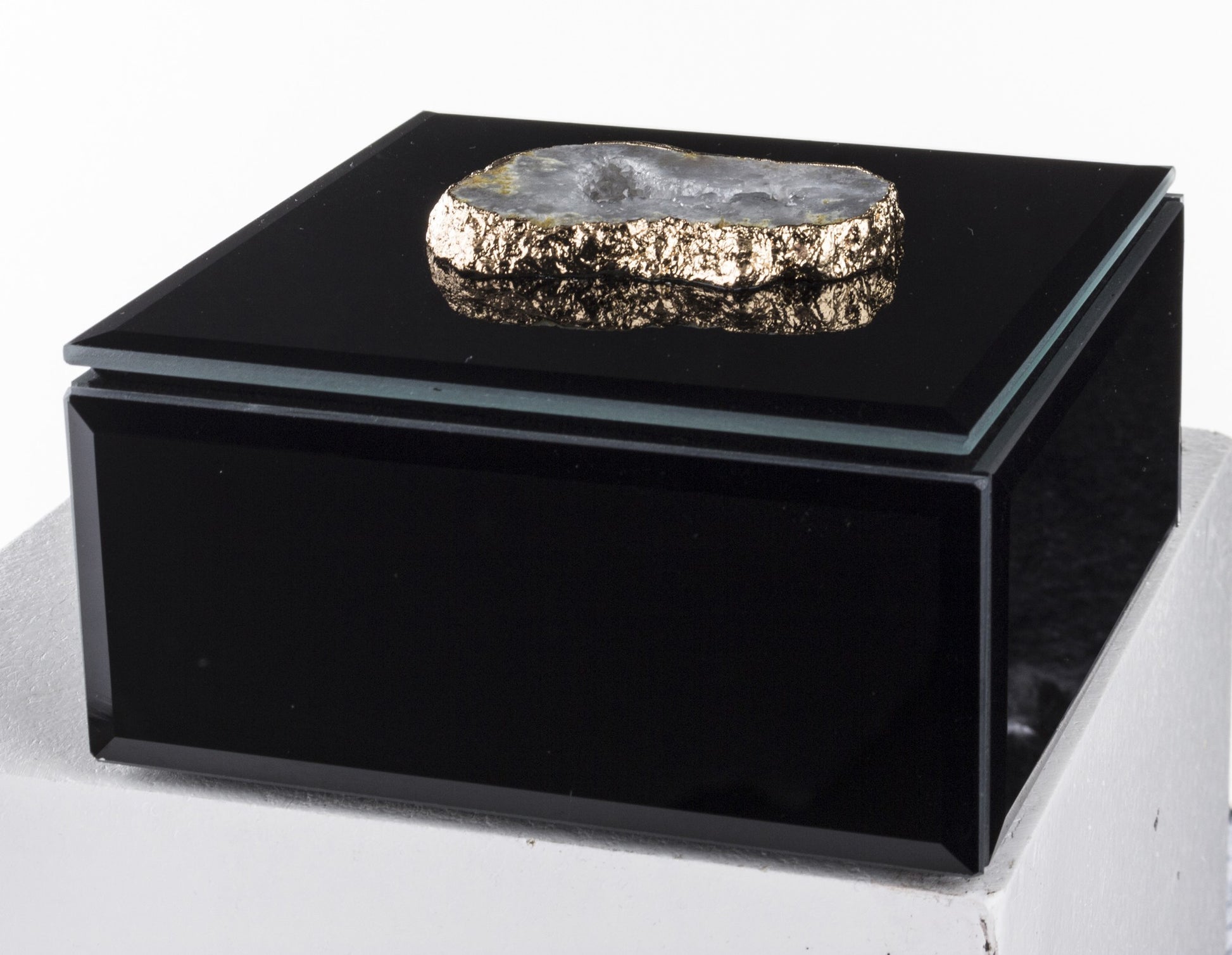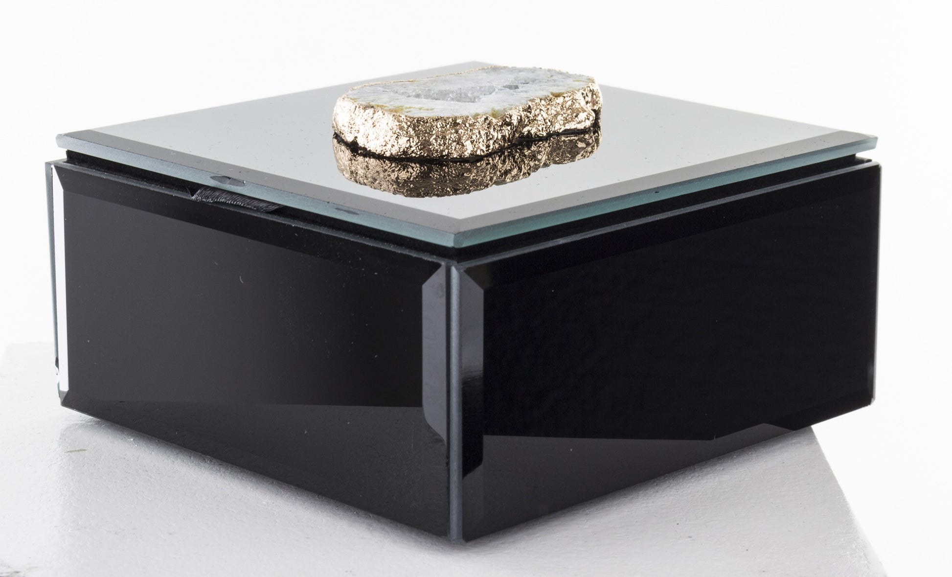 Cutie bijuterii sticlă neagră cu piatră mică 6,5x12x12 cm