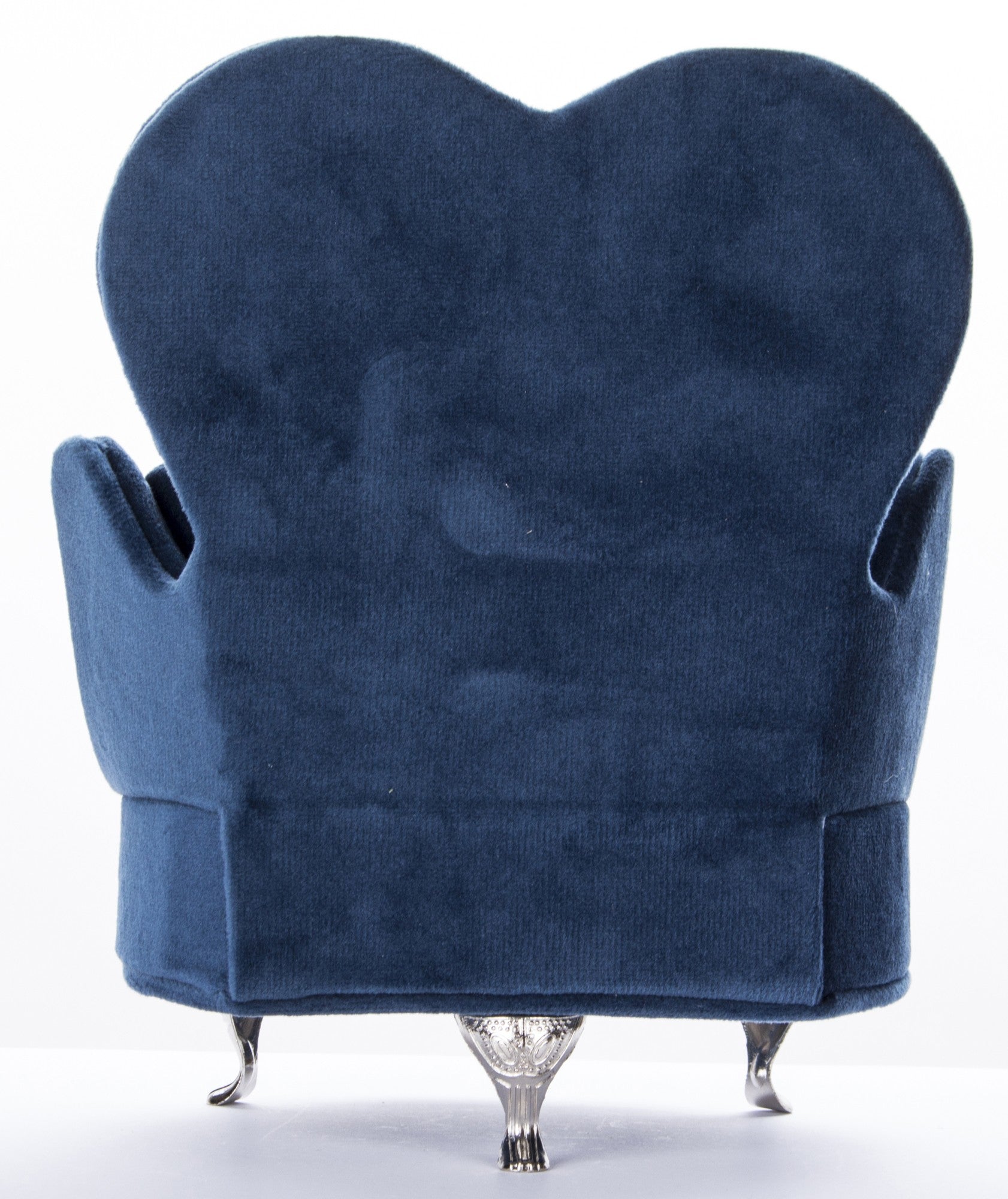Cutie de bijuterii tip fotoliu din catifea albastră, un obiect decorativ rafinat care păstrează bijuteriile în siguranță. Perfectă pentru dormitor sau ca cadou elegant pentru persoanele dragi. Livrare gratuită în România pentru comenzi peste 350 lei.