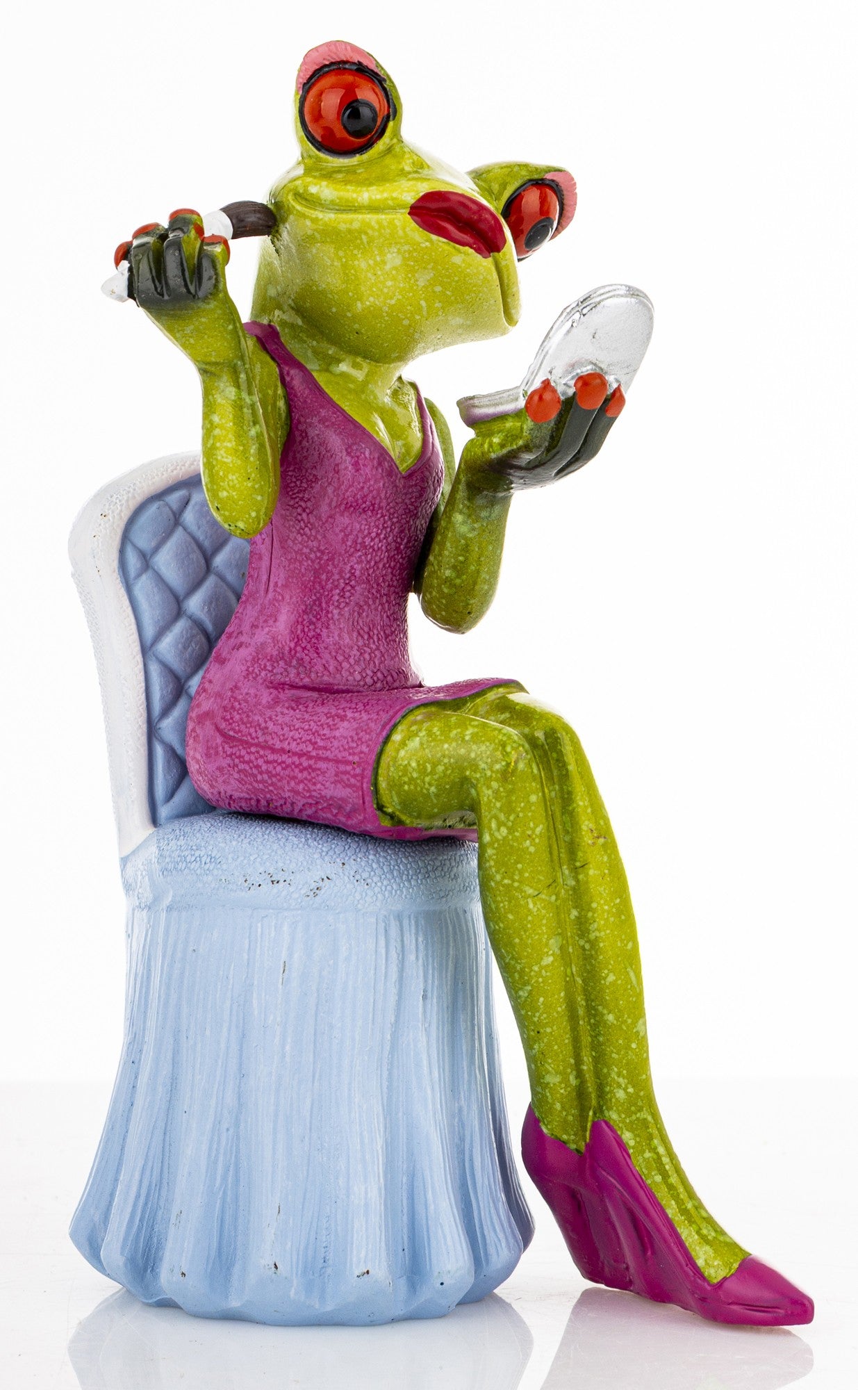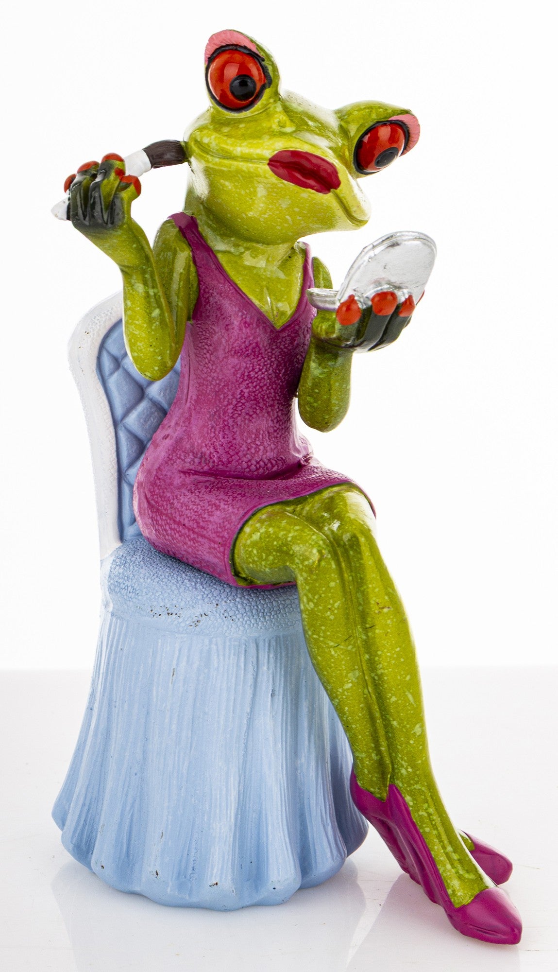 Figurină amuzantă din rășină ce reprezintă o broască aplicând machiaj, ideală pentru decor tematic sau cadou haios. Livrare gratuită la comenzi peste 350 lei – mentha