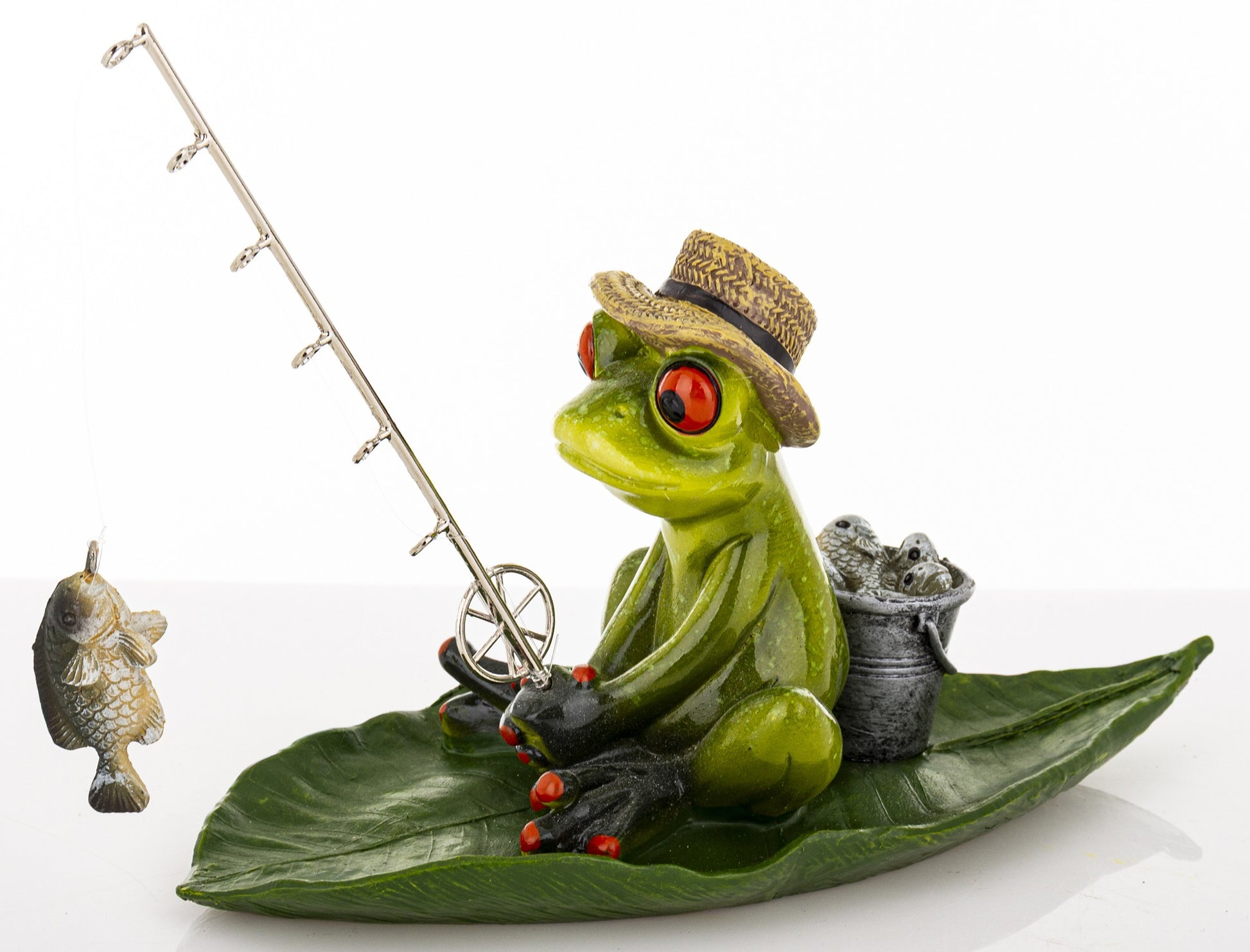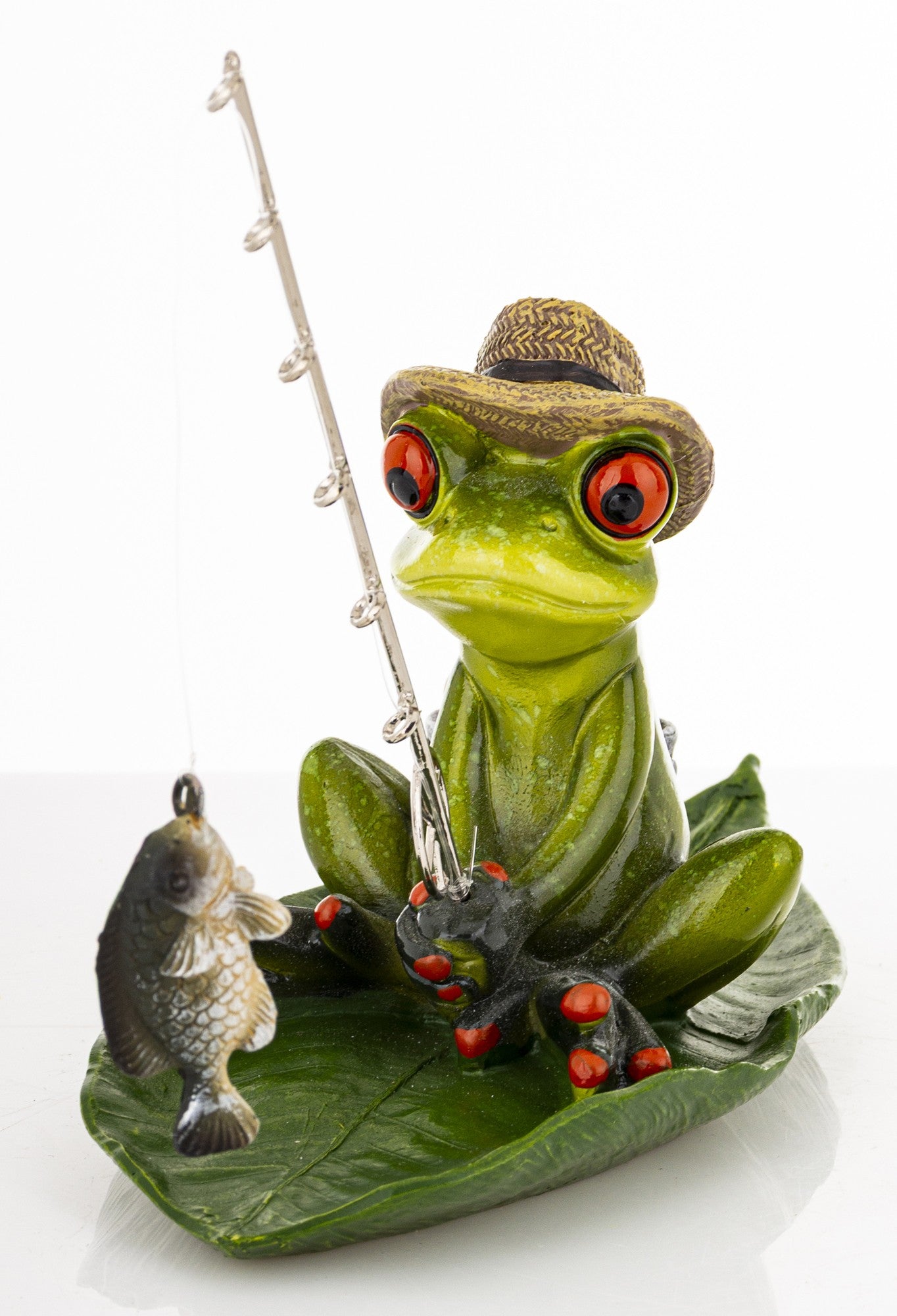Figurină decorativă din rășină, reprezentând o broască pescar în acțiune. Perfectă pentru decor interior amuzant, colecții de figurină sau cadouri tematice pentru iubitorii de animale și natură.