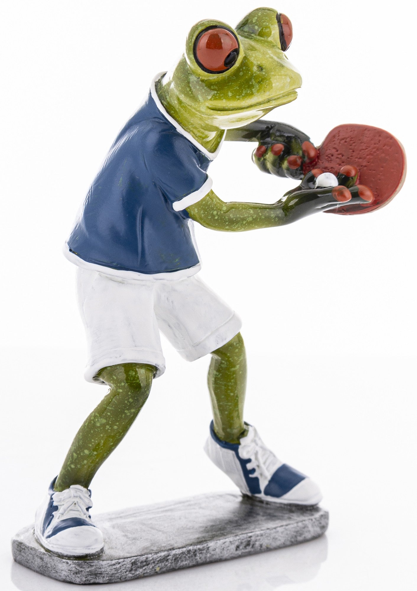 Figurină amuzantă din rășină ce prezintă o broască jucând ping pong. Potrivită ca ornament vesel pentru interior sau ca dar haios pentru prieteni. Transport gratuit la comenzi peste 350 lei – mentha
