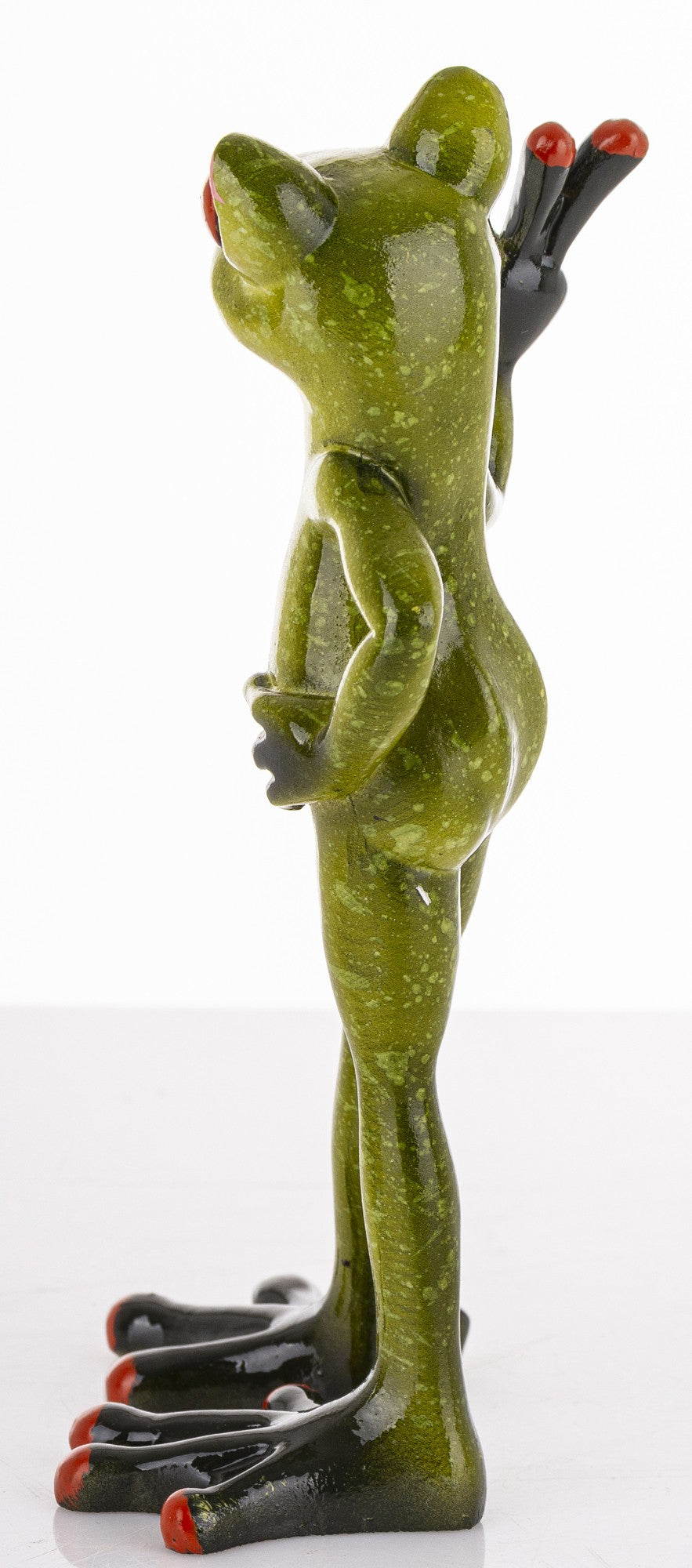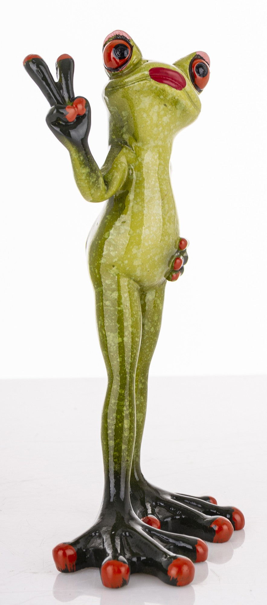 Decorațiune veselă din rășină în formă de broască cu poziție „V”. Ideală pentru un decor haios în living sau birou, și ca cadou amuzant pentru prieteni. Transport gratuit peste 350 lei – mentha
