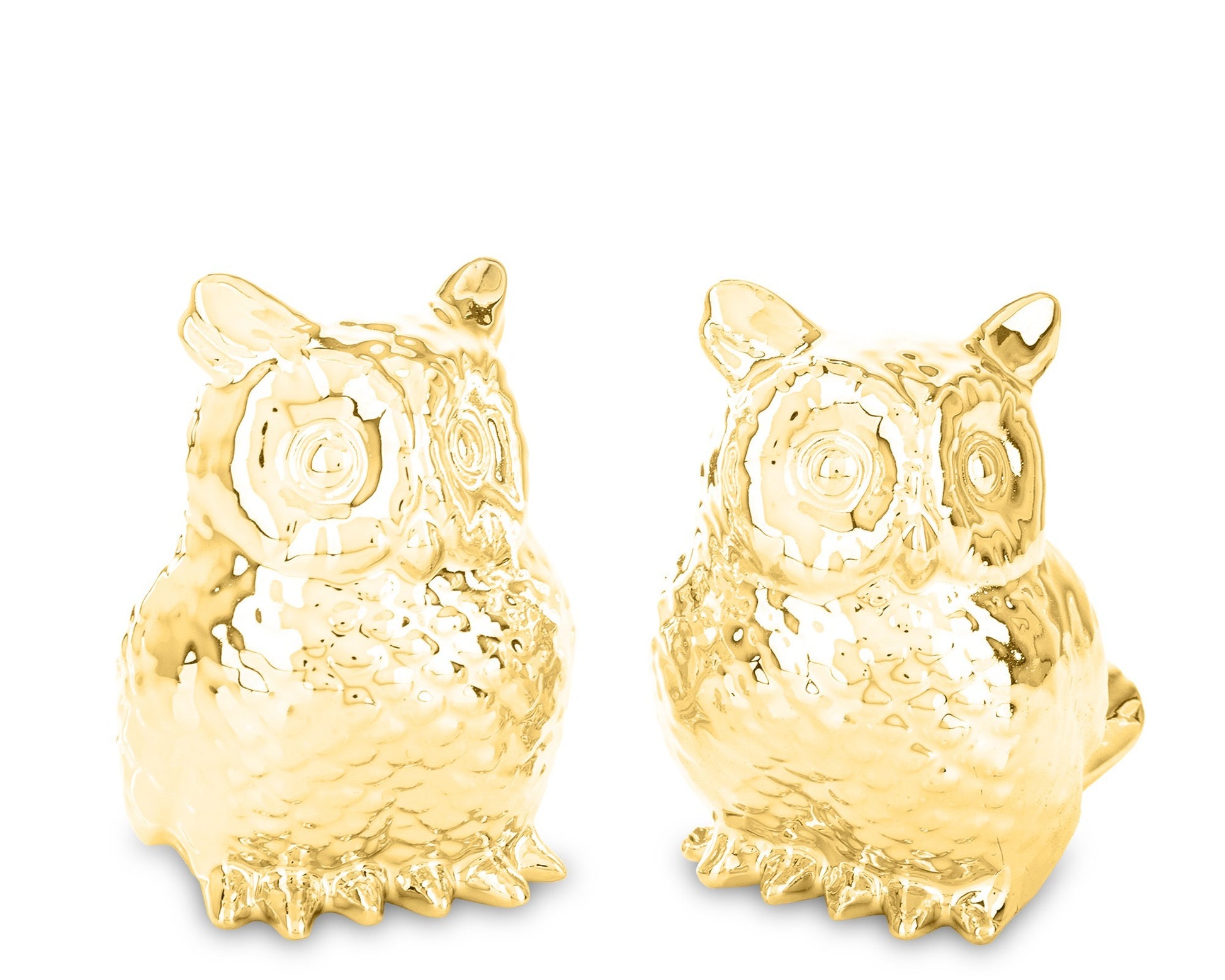 Figurină bufniță ceramică aurie, simbol al înțelepciunii și rafinamentului, ideală pentru decor interior sau cadouri speciale. Livrare gratuită pentru comenzi peste 350 lei.
