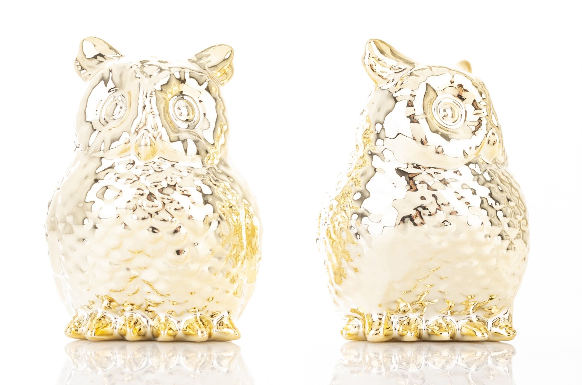 Figurină bufniță ceramică aurie 7,5x5,5x7 cm
