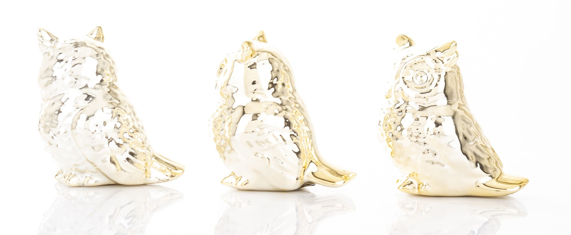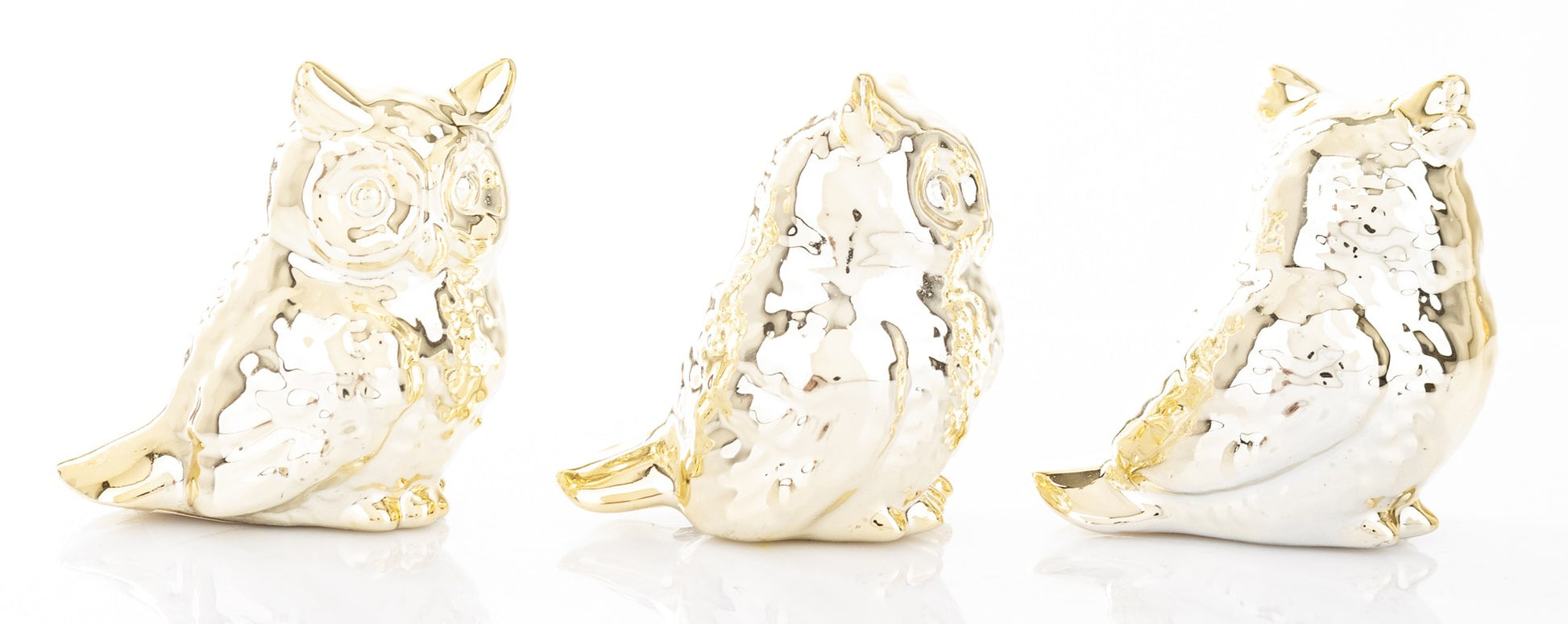 Figurină bufniță ceramică aurie 5,5x4x5,5 cm