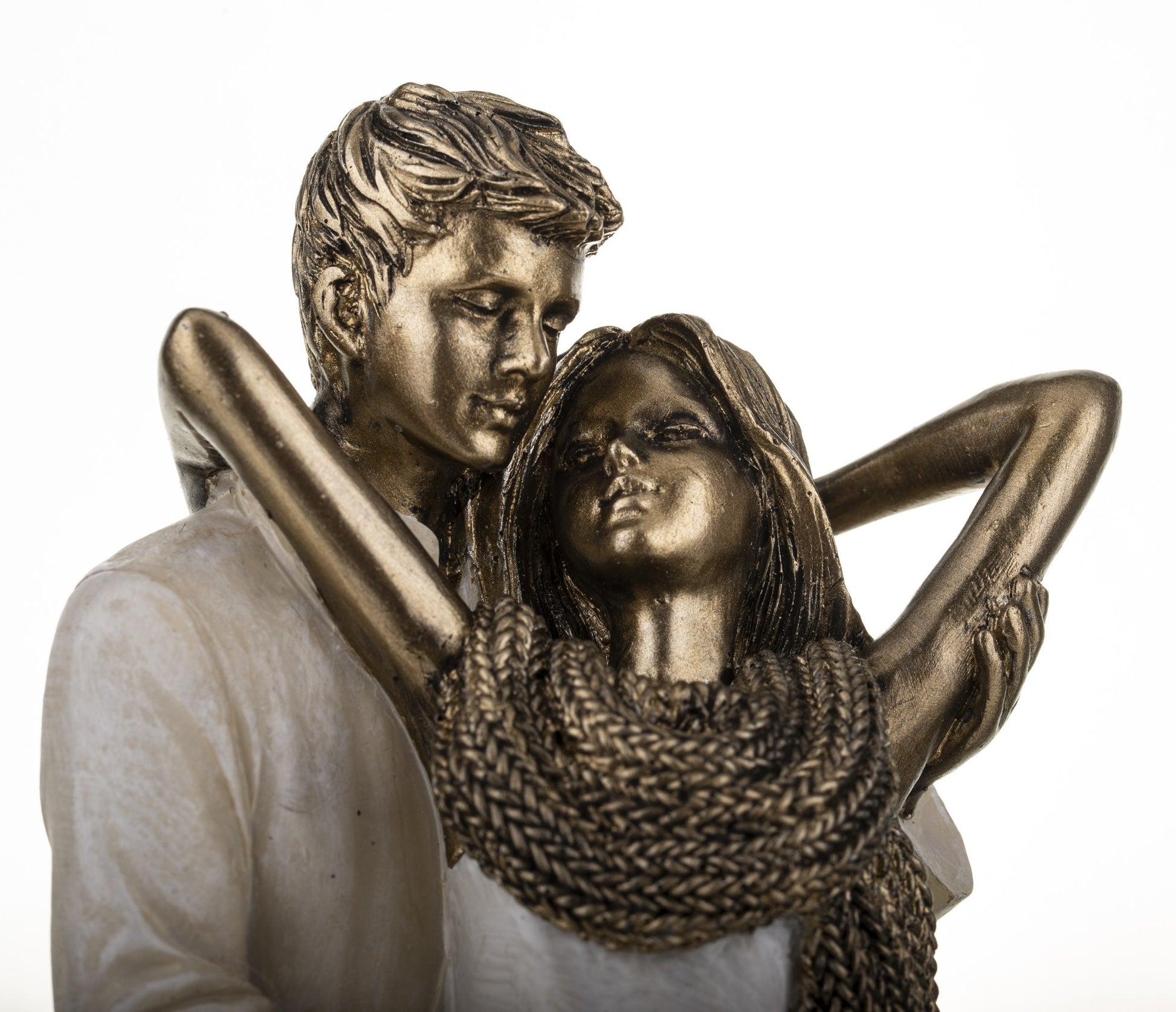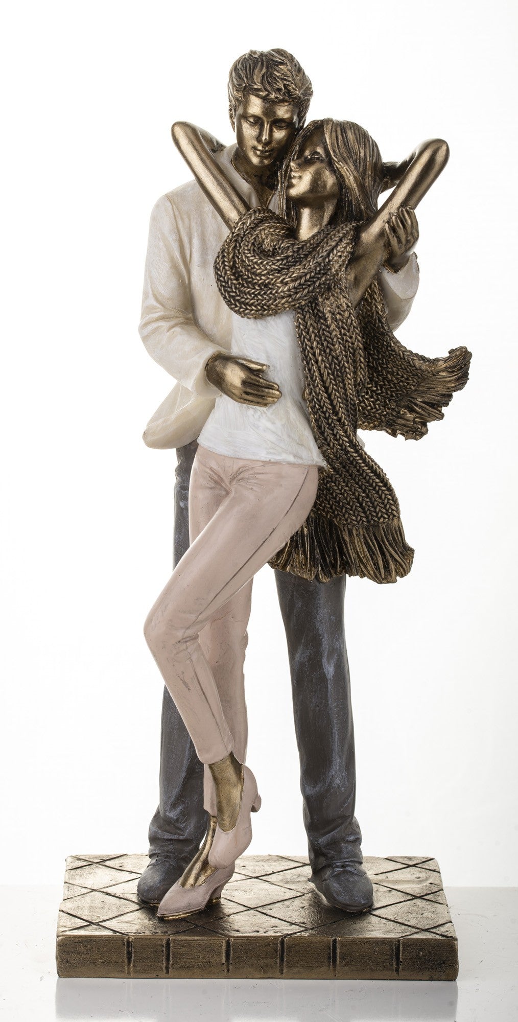 Figurină cuplu cu eșarfă din rășină, 25x11x8 cm, un obiect decorativ care emană romantism și rafinament. Ideală pentru living, dormitor sau birou, poate fi folosită și ca un cadou special pentru persoanele dragi.