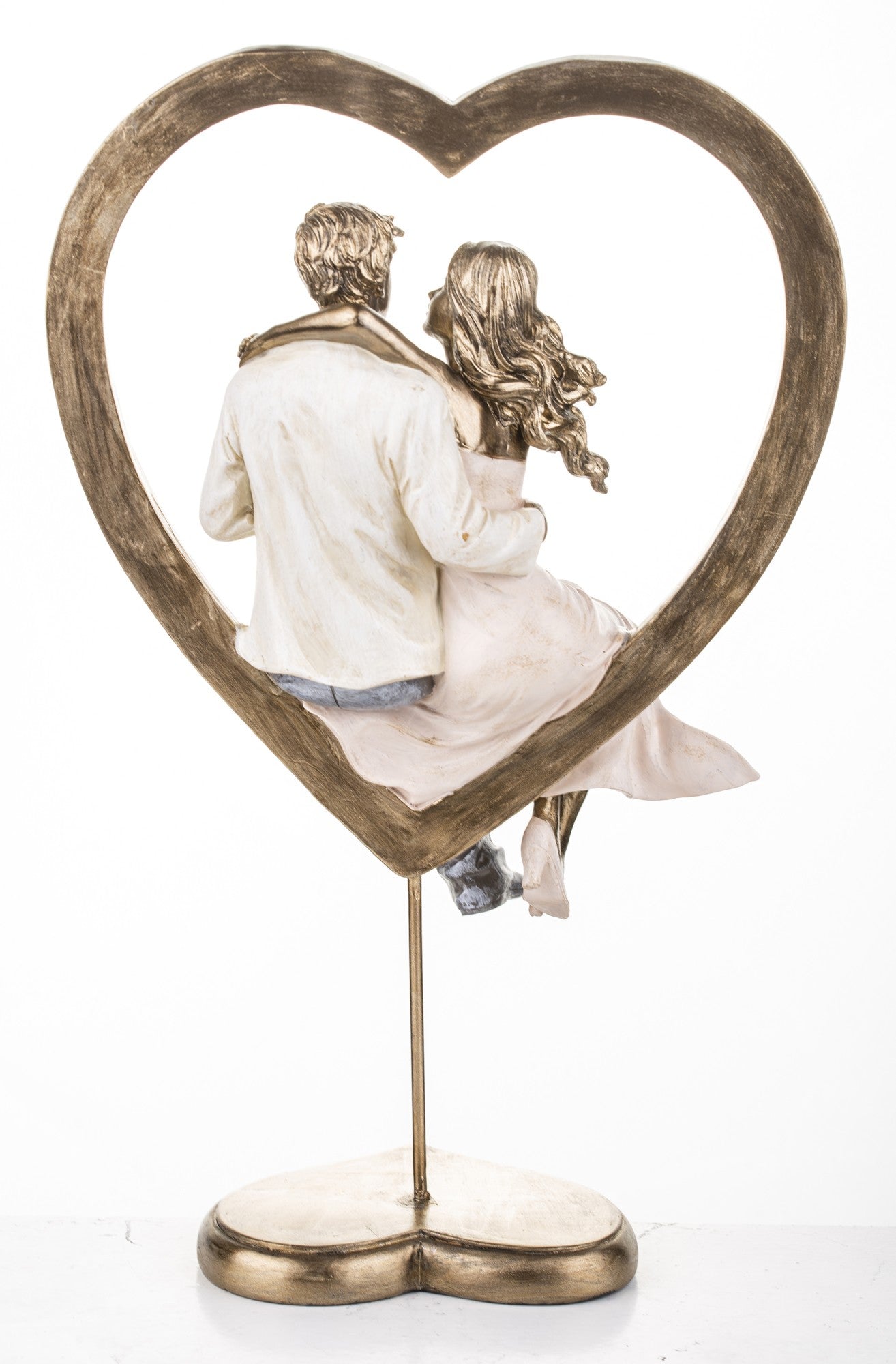 Figurină cuplu îmbrățișați cadru inimă 28x19x11 cm, expresie artistică a iubirii. Perfectă ca decor romantic și cadou memorabil.