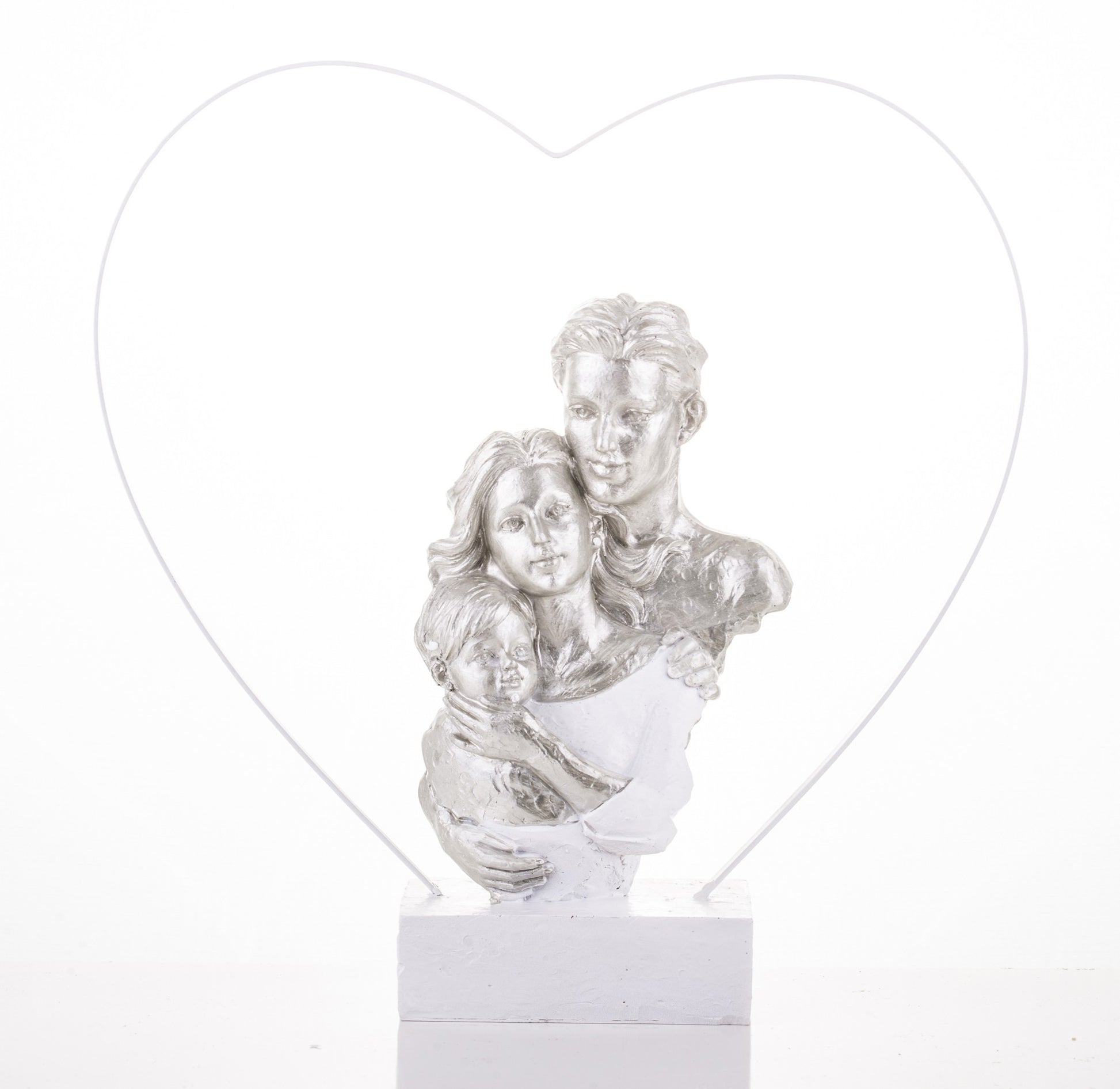 Figurină familie cu un copil în cadru inimă 29x28x6,5 cm