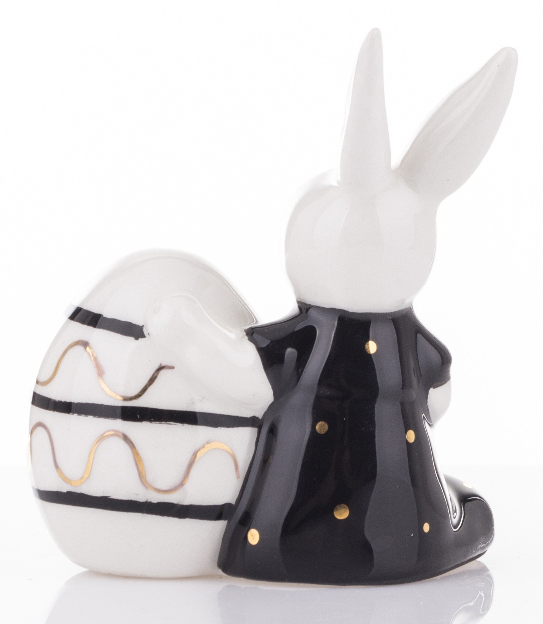 Figurină iepure cu ou alb negru 8,5x7,5x7 cm