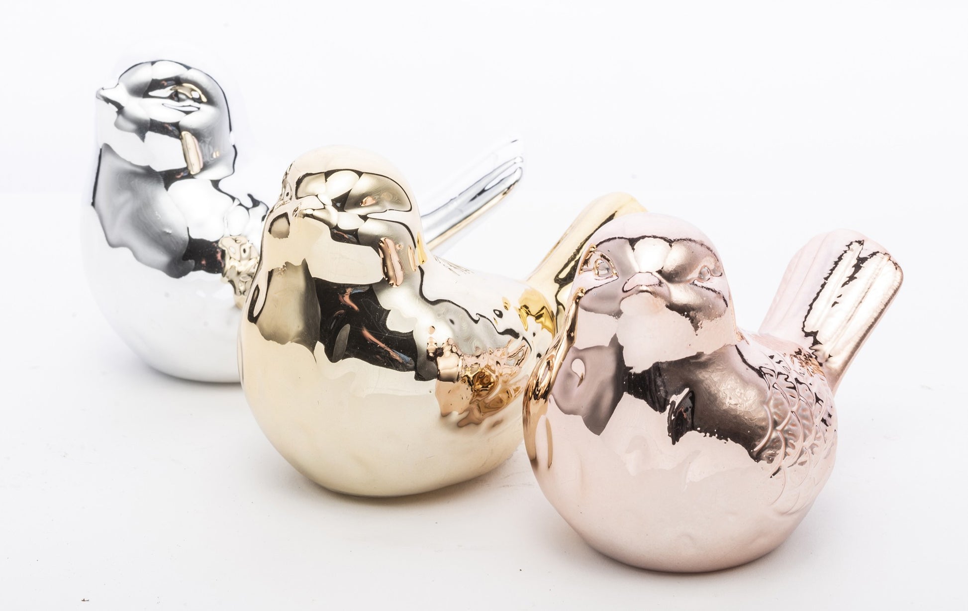 Figurină pasăre ceramică argintie, 8x6,5x10 cm, decor delicat și rafinat. Ideală pentru a fi așezată pe raft, birou sau ca parte dintr-o colecție. Livrare gratuită în România pentru comenzi peste 350 lei. mentha