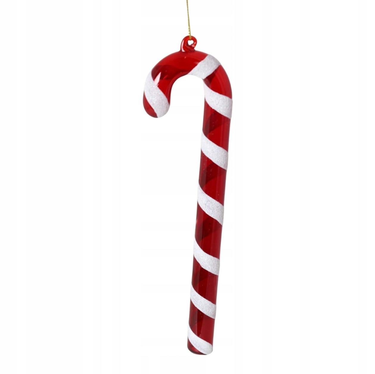 Glob decorativ din sticlă, model baston roșu de Crăciun, 2x5x20cm. Un ornament clasic și elegant ce aduce un plus de tradiție și culoare bradului festiv.