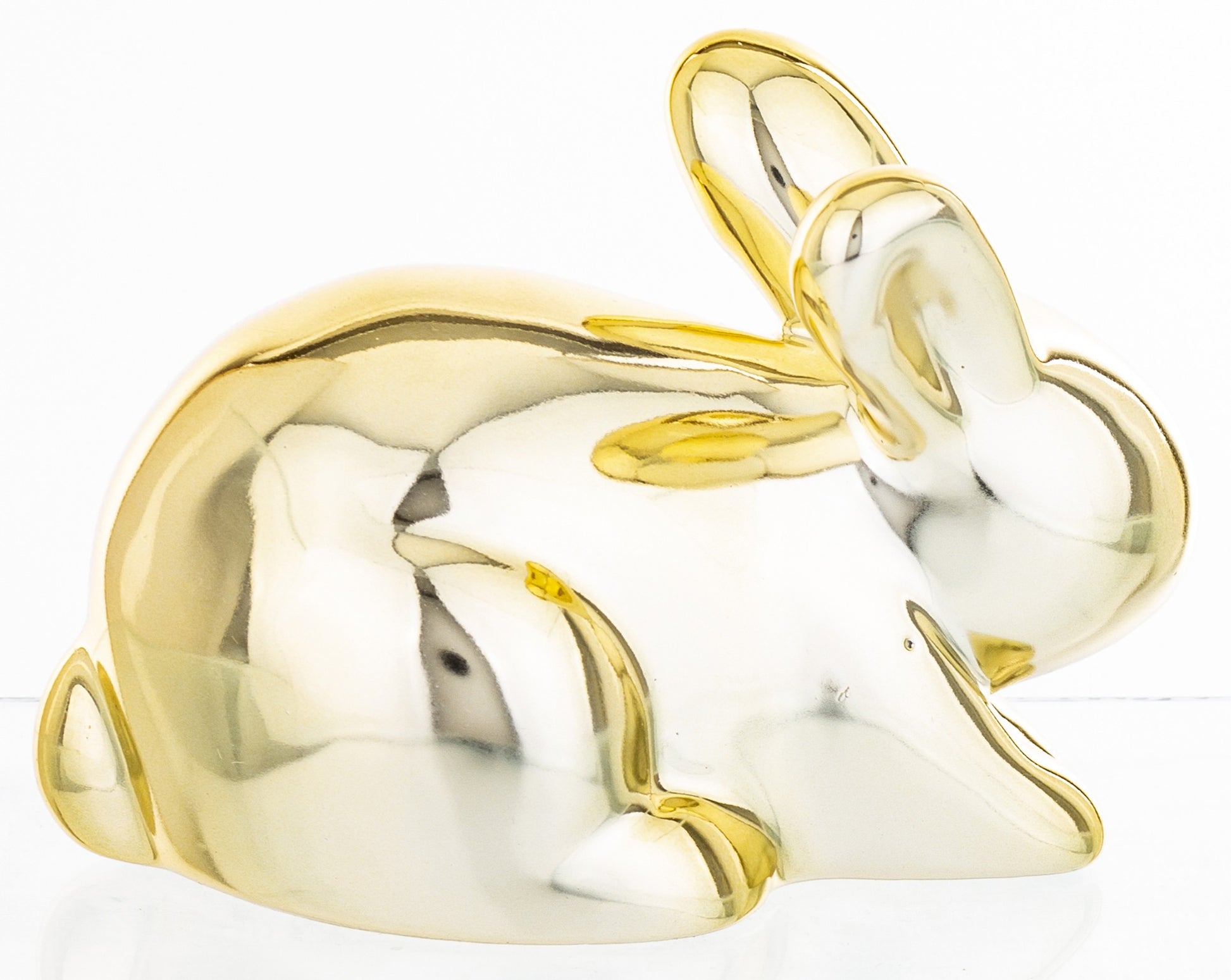 Iepure ceramic auriu, mic și delicat, potrivit pentru colecții, decor de Paște sau cadouri speciale. Livrare gratuită pentru comenzi peste 350 lei.