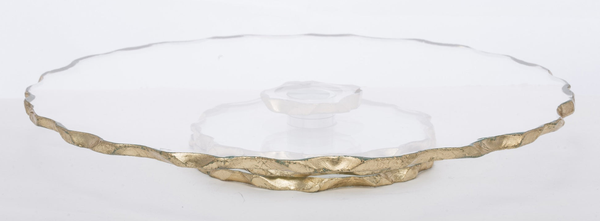 Platoul rotativ din sticlă auriu, cu dimensiuni de 33 cm, este o piesă decorativă modernă și practică, ideală pentru servire sau pentru a aduce un accent luxos în decorul casei. Designul său elegant transformă mesele festive sau întâlnirile de familie într-un moment cu adevărat special.