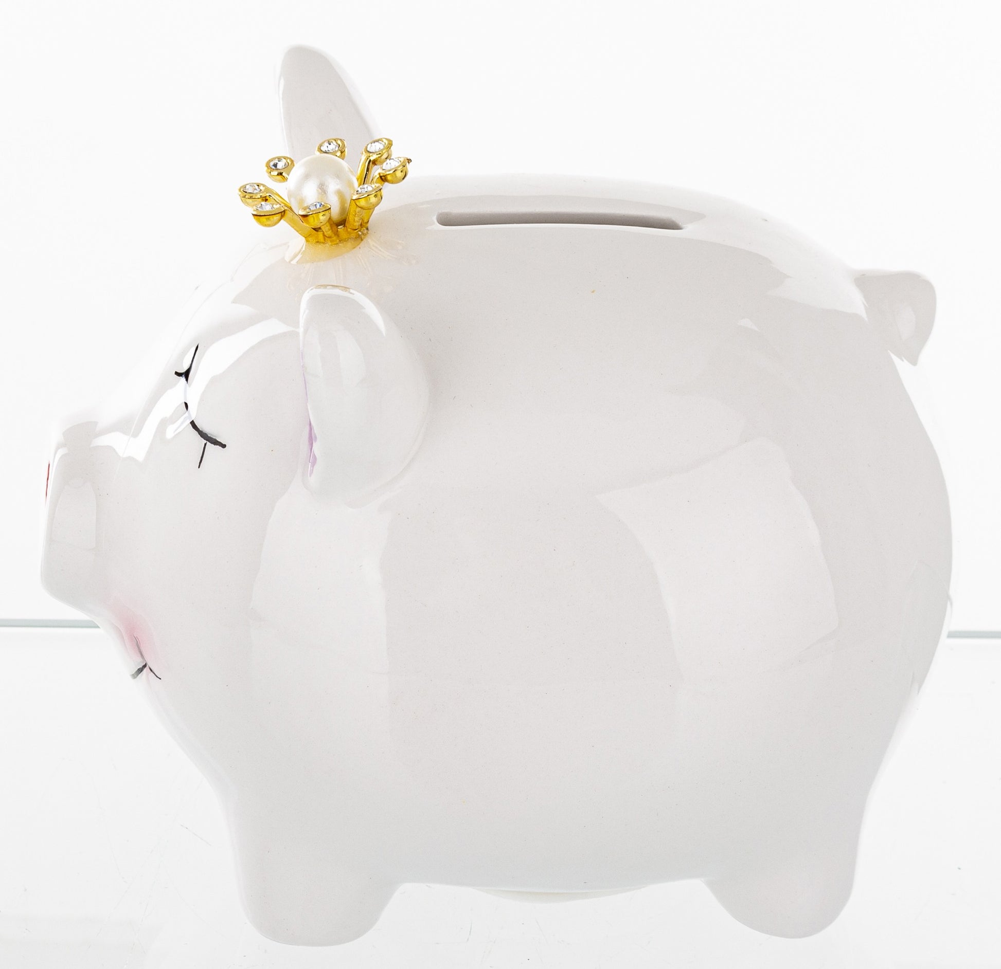 Pușculiță ceramică porcușor cu coroană 10,5x9,5x12,5 cm