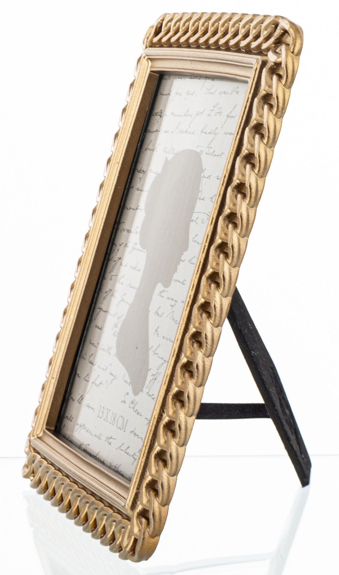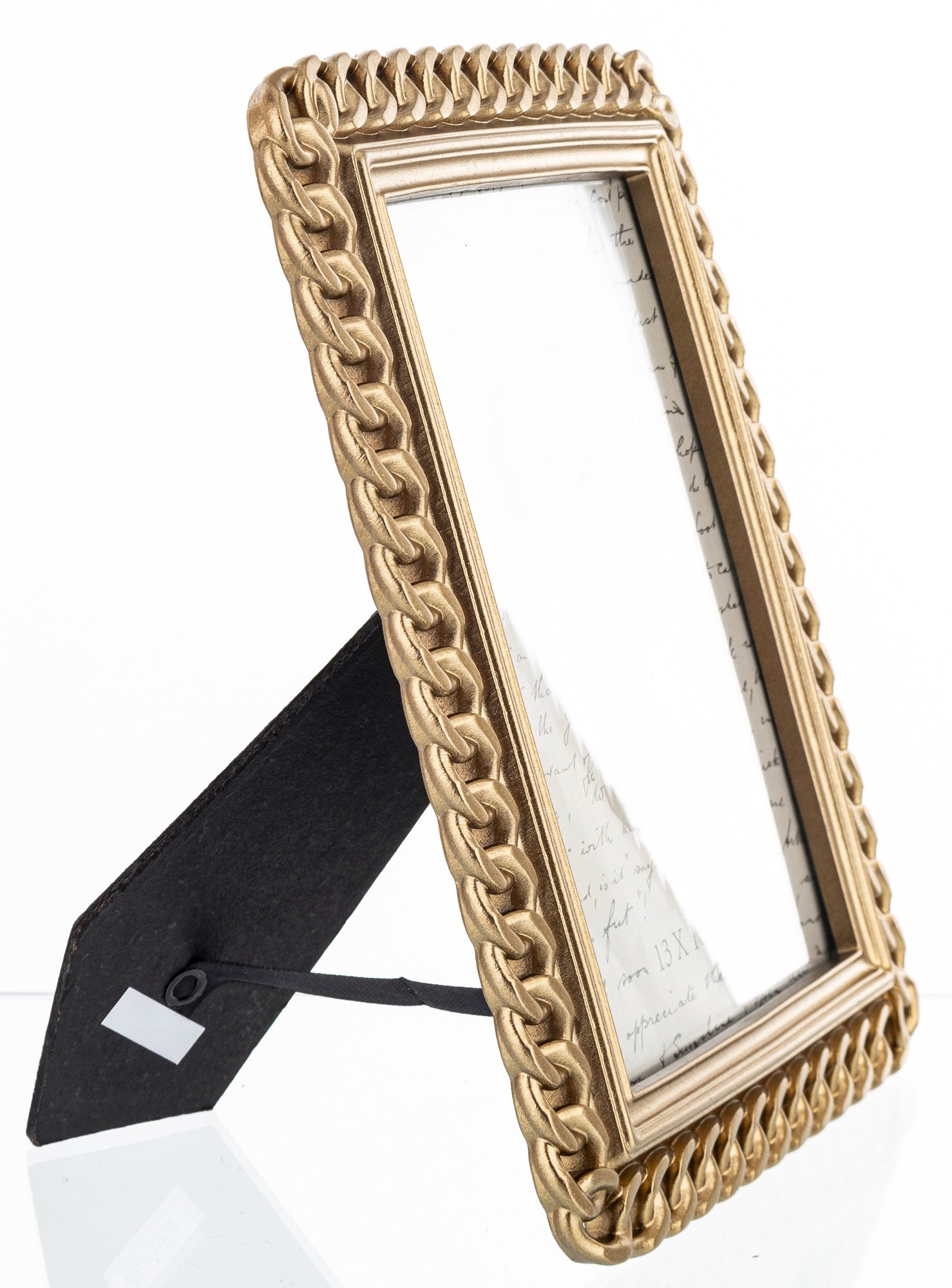 Ramă foto aurie 23x18x1,5-13 cm, cu finisaj elegant și strălucitor. Perfectă pentru fotografii de familie, portrete sau imagini artistice, fiind un element decorativ rafinat.