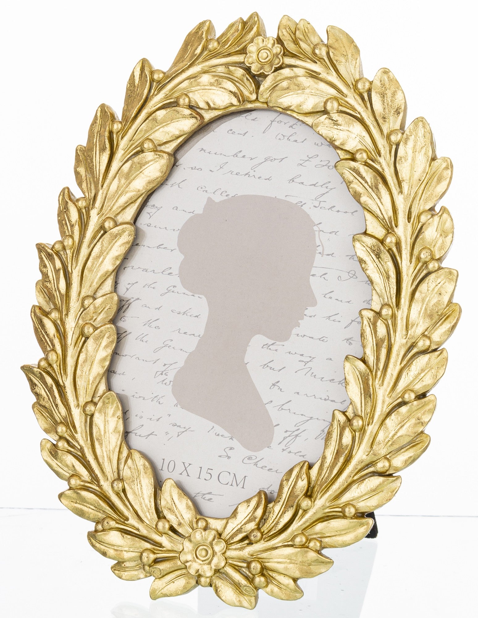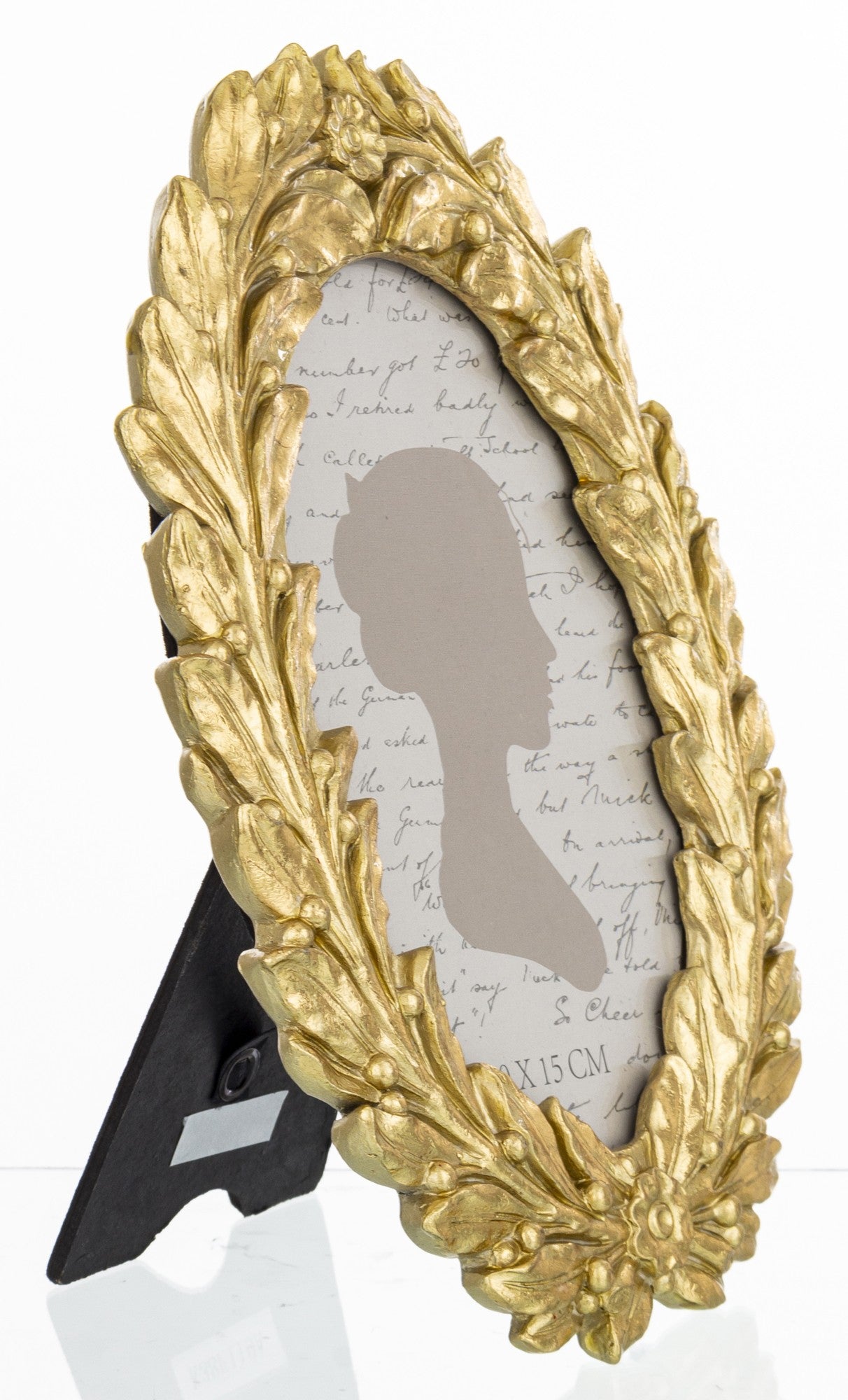 Ramă foto aurie cu lauri 20x15x1,5-10 cm, un obiect decorativ elegant, cu detalii clasice. Ideală pentru fotografii și ca piesă de decor rafinată.