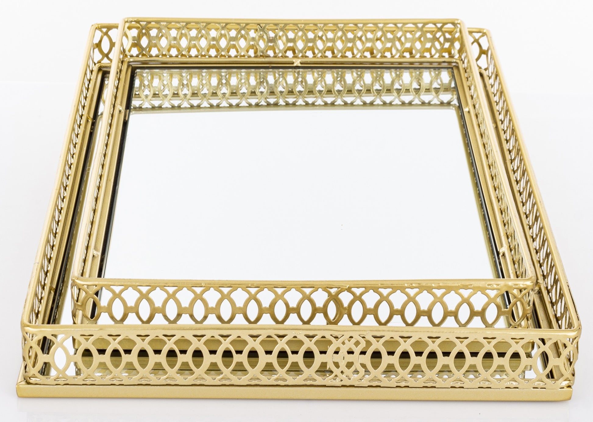 Tavă aurie cu oglindă mică 34x24x4,5 cm – decor rafinat