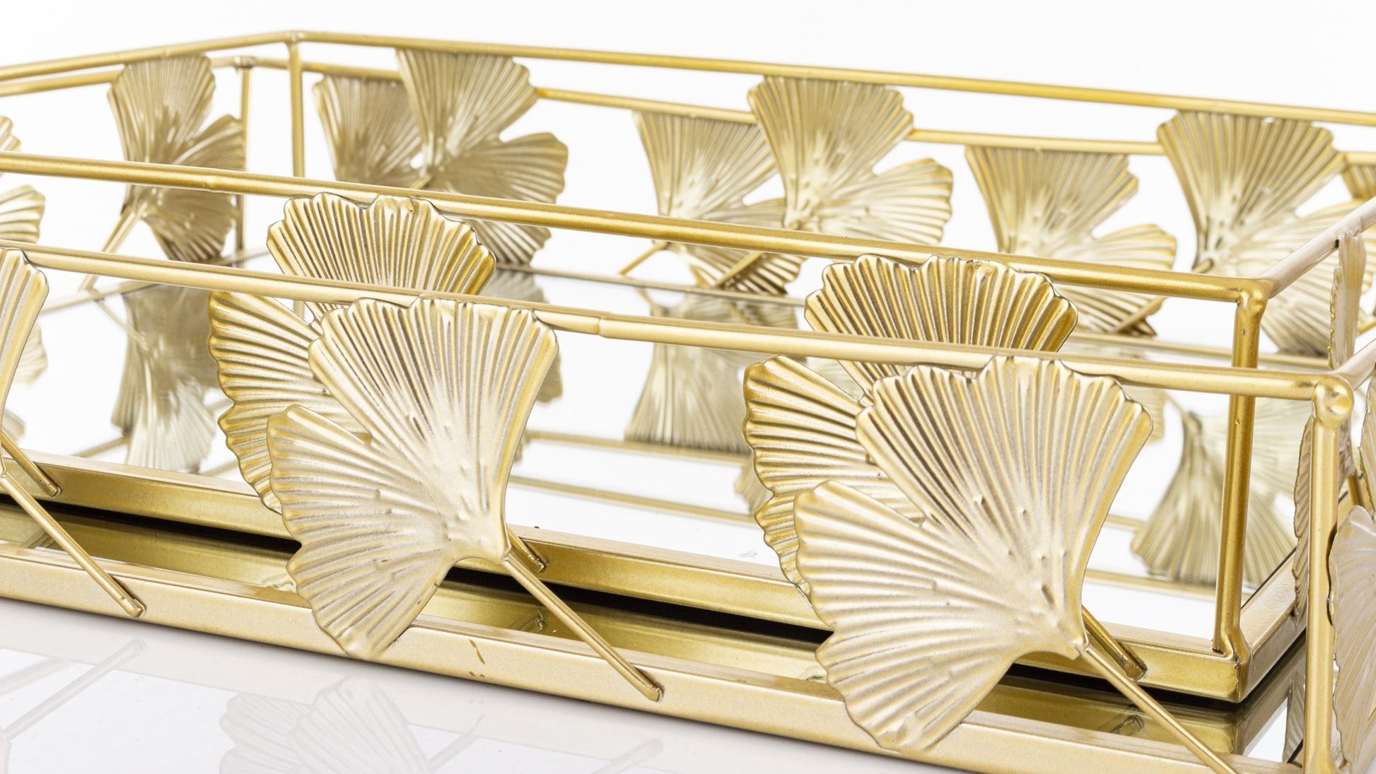 Tavă aurie ginko oglindă mare 38x28x7 cm – decor sofisticat