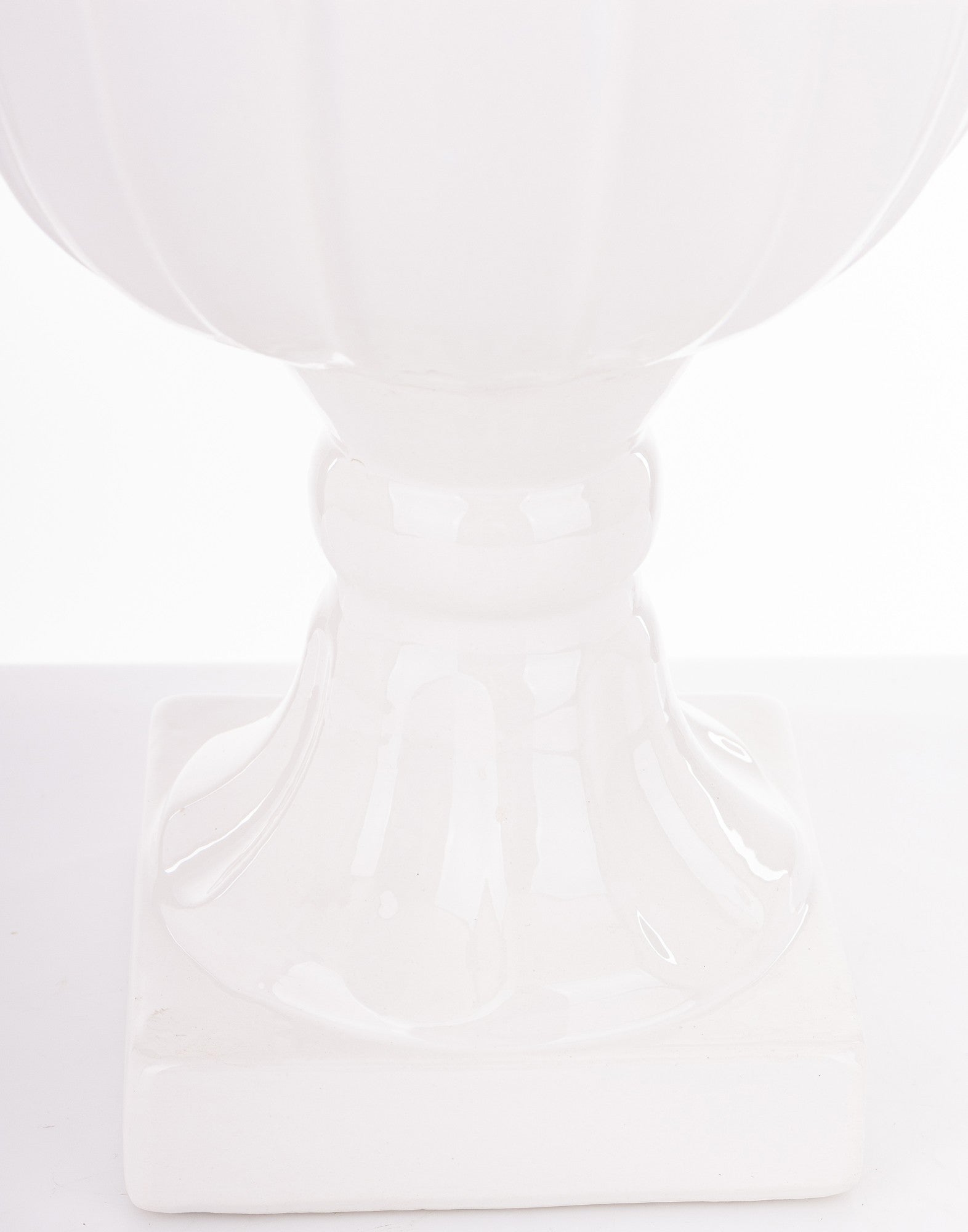 Vază albă din ceramică cu picior 36x23x23 cm, sofisticată și impunătoare. Potrivită pentru aranjamente florale grandioase.